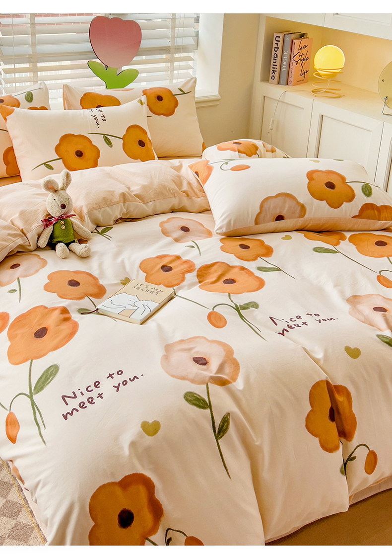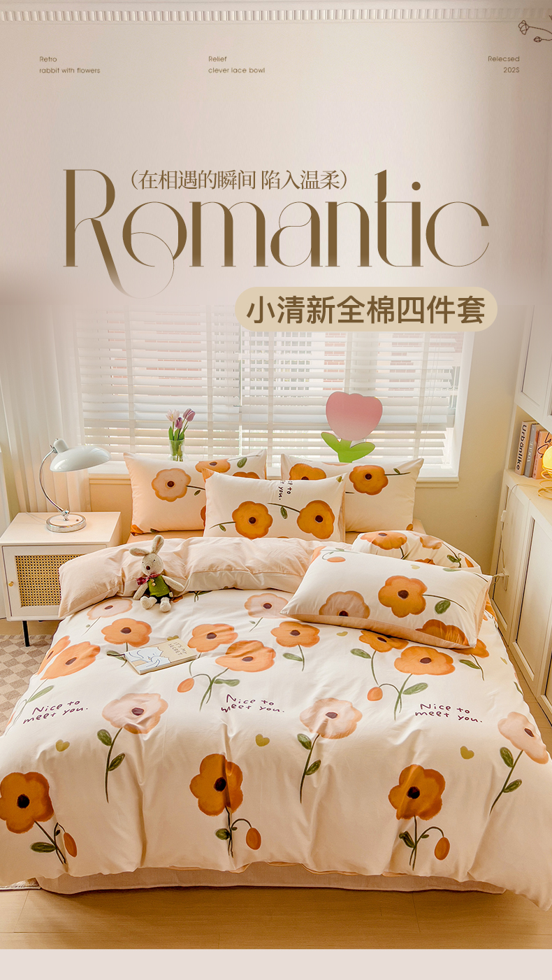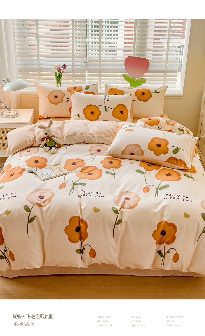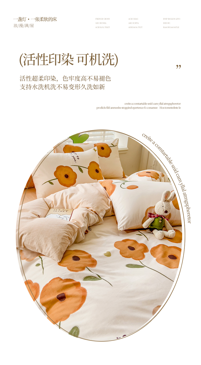 【全棉小清新四件套】田园风格全棉四件套 全棉舒适面料 活性印染AB面设计