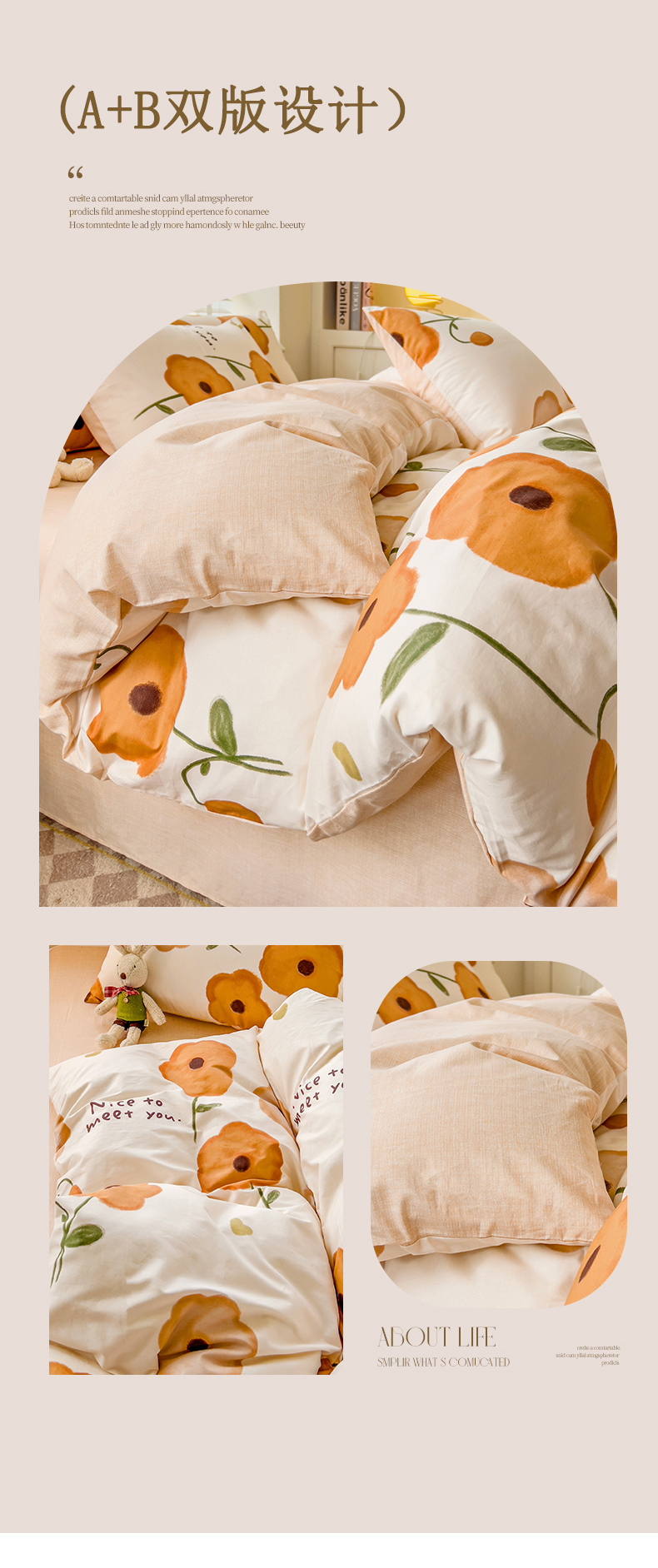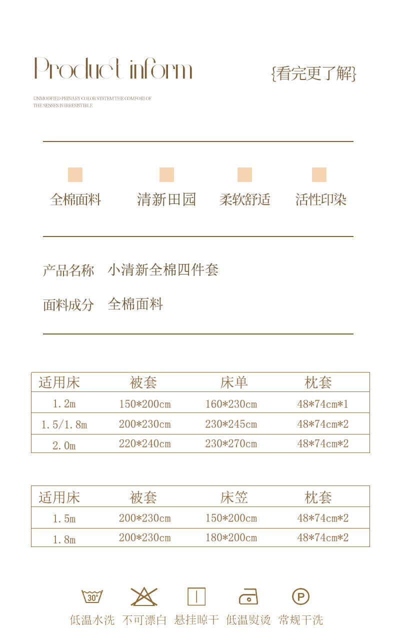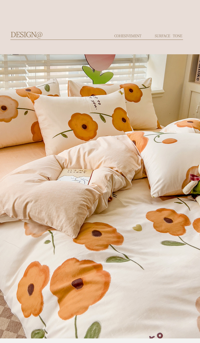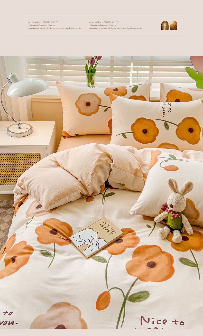 【全棉小清新四件套】田园风格全棉四件套 全棉舒适面料 活性印染AB面设计