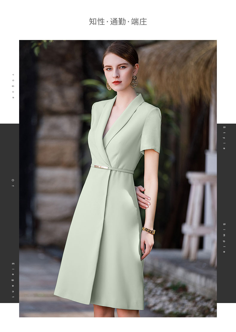 IWY/绿色短袖西装连衣裙女夏季新款职业套装ol高端品牌裙子Q926-G