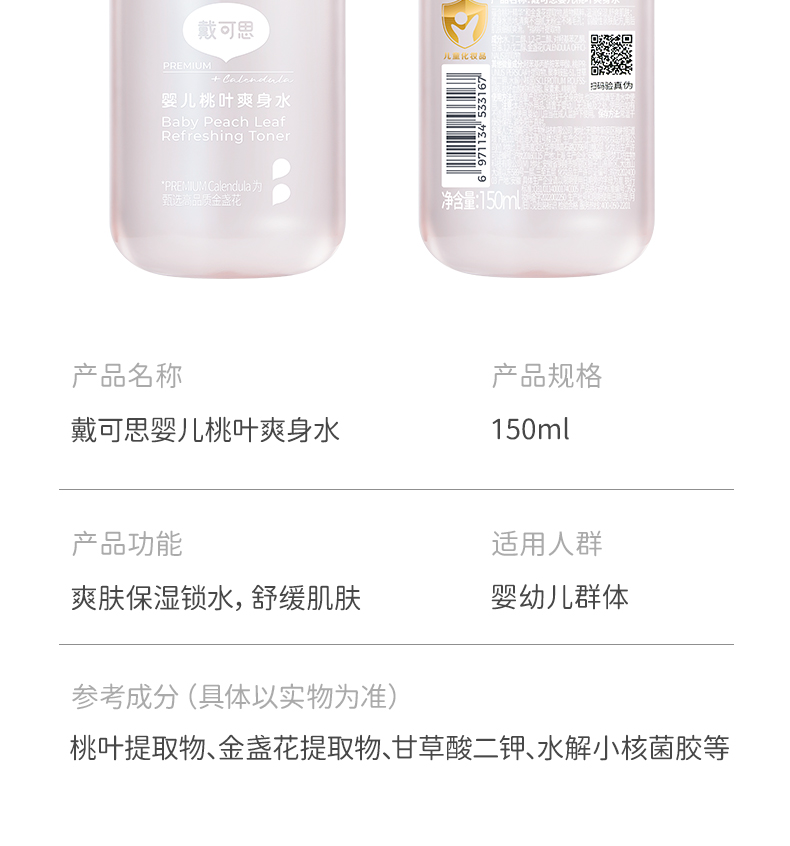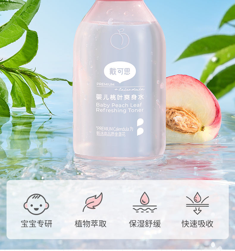【桃叶爽身水推荐】戴可思婴儿桃子水爽身露爽身精华液体150ml买1送1,到手300ml