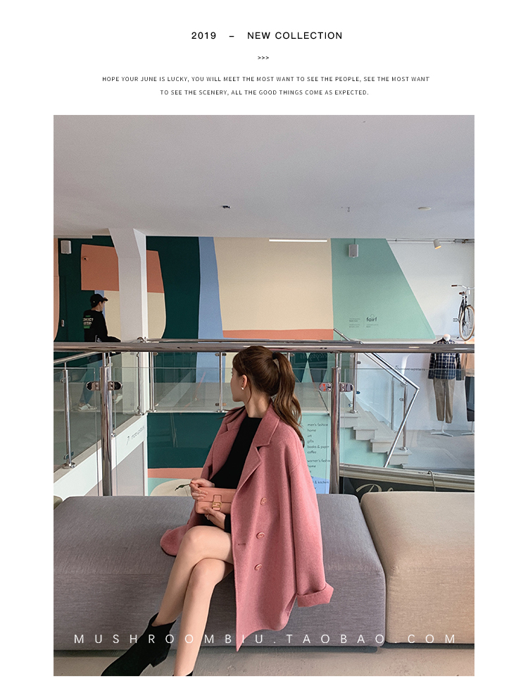 金蘑菇菇 高端双面呢大衣长袖翻领中长款双排扣外套
