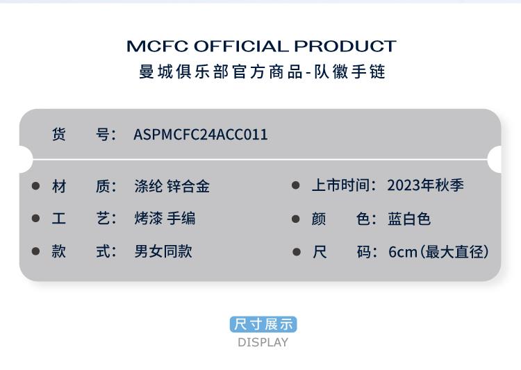 曼城俱乐部 | 蓝白拼接队徽款手绳足球迷周边