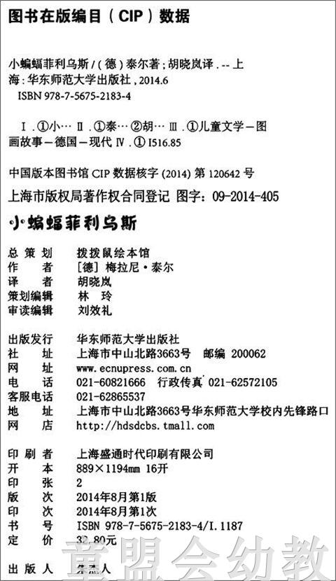 拨拨鼠 小蝙蝠菲利乌斯 华东师范大学出版社