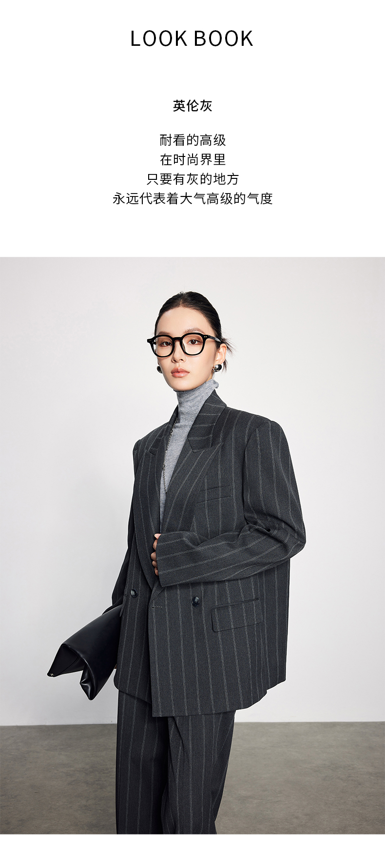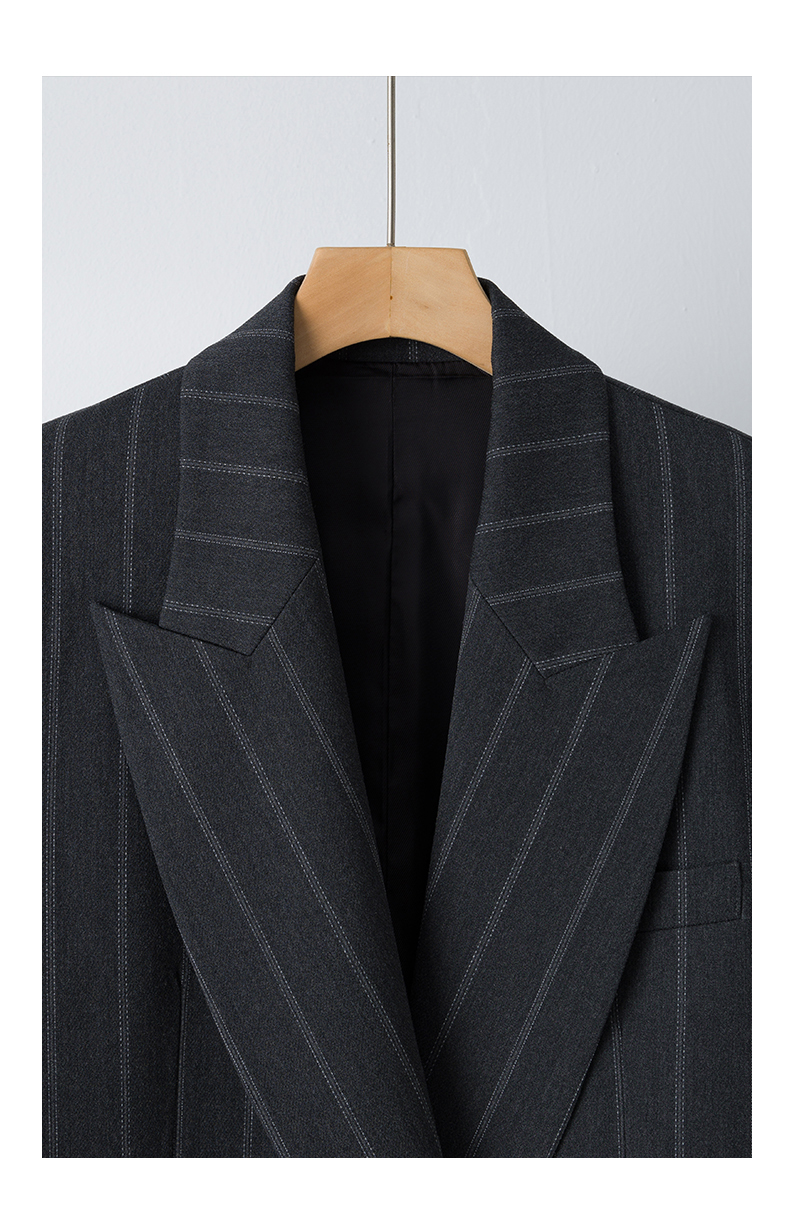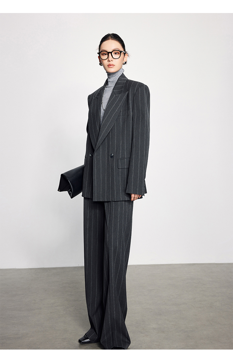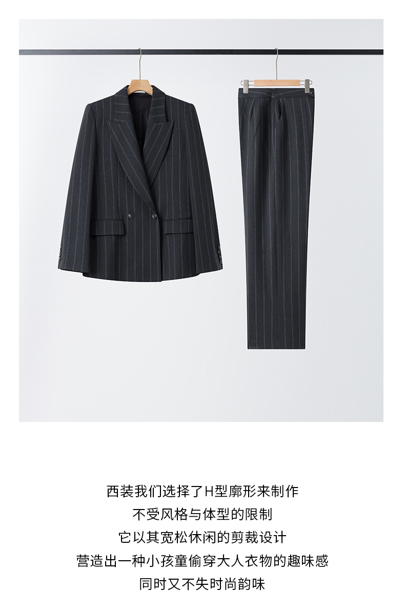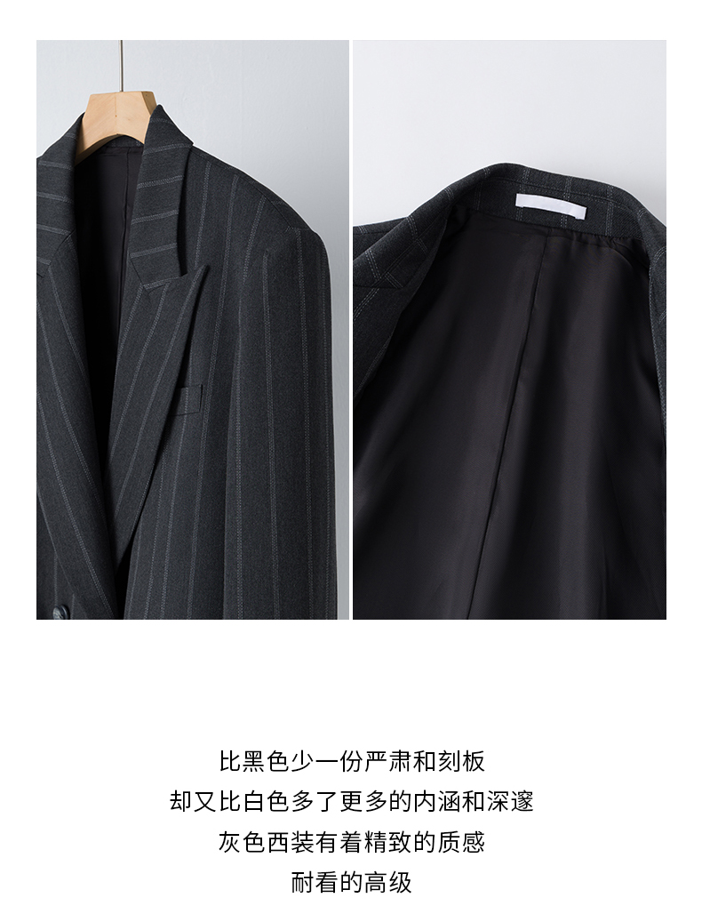 法小曼*子珍条纹气质西装套装高级显瘦休闲风宽松灰色西服