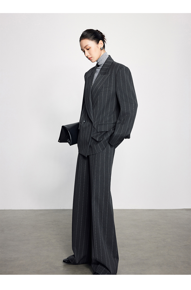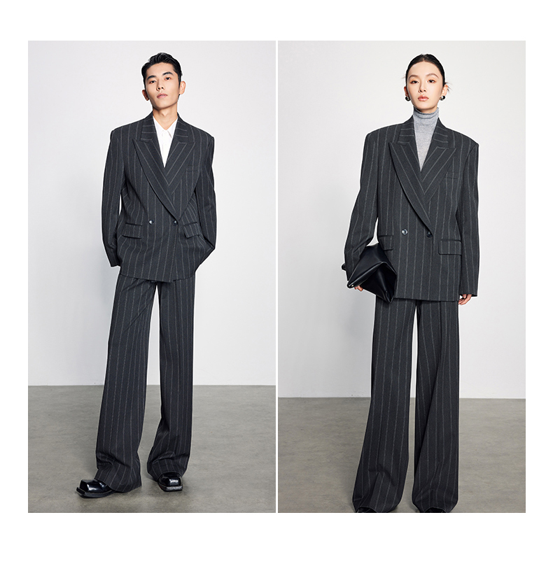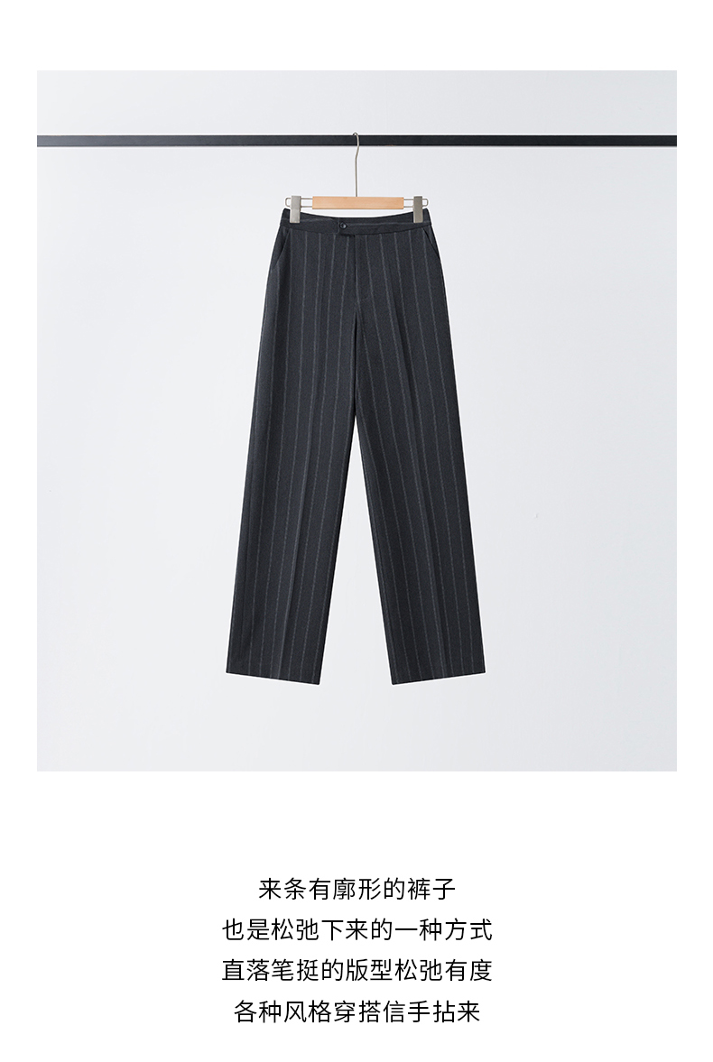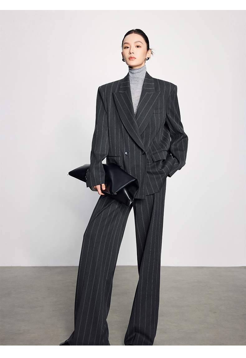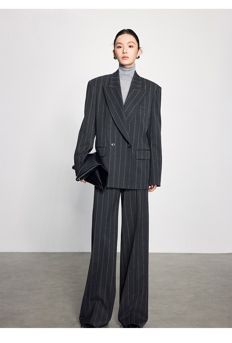 法小曼*子珍条纹气质西装套装高级显瘦休闲风宽松灰色西服