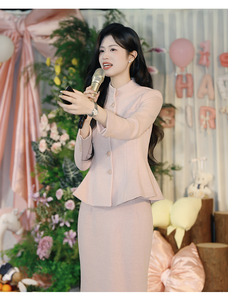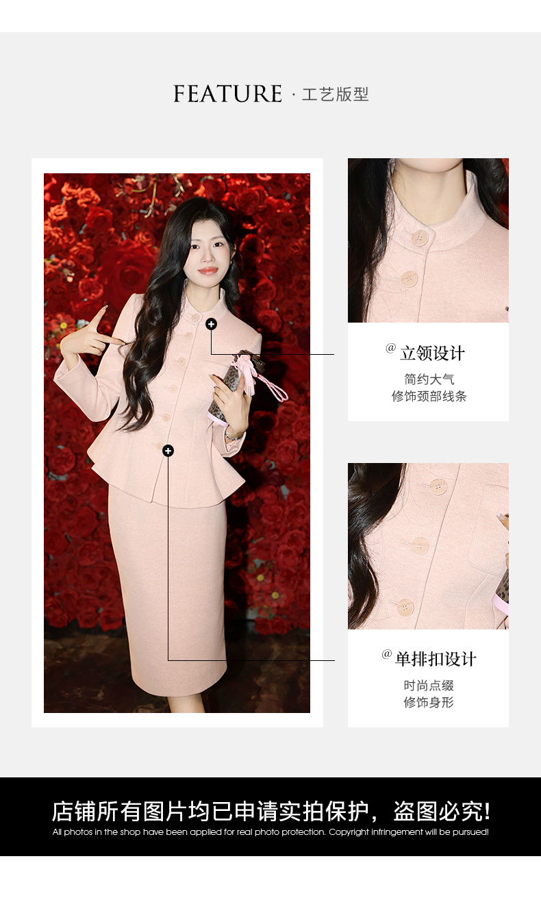 法小曼*子珍专款/高级高端粉色面试职业装套裙女设计感小香风秋冬厚款
