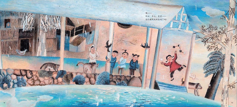 本书以贵州大利侗寨为原型创作,通过一位侗族的小女孩寻找走失的公鸡的故事,生动地展现了贵州侗寨的美丽风土人情,以及侗族人民极富特色的传统建筑、服饰、文化和生活方式。
