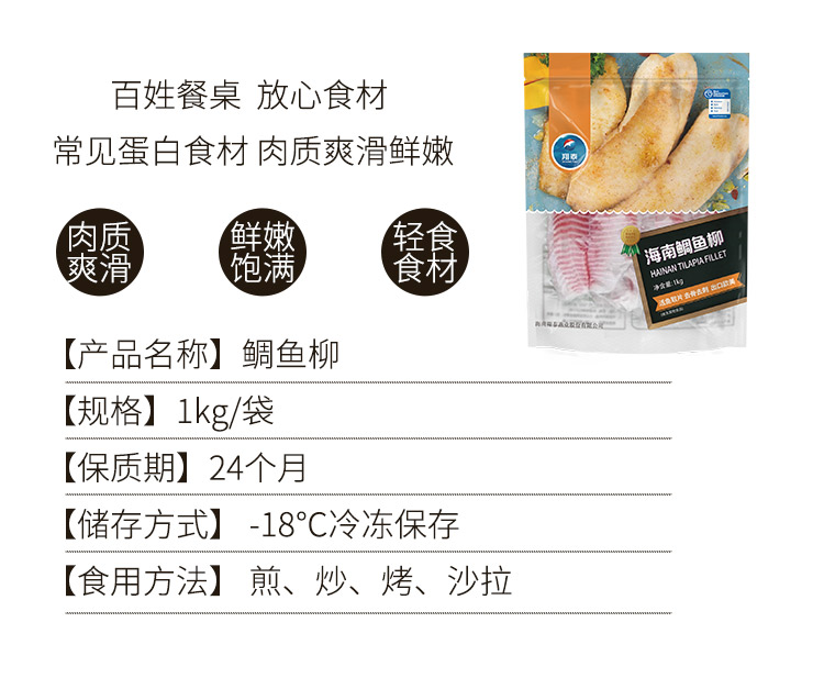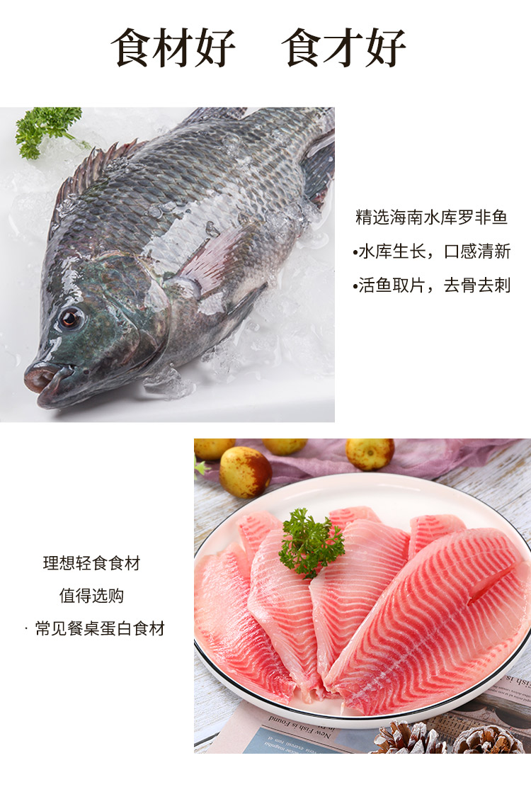 新鲜海南罗非鱼片1000g*2 去骨去刺 单片真空 共10-14片 共4斤
