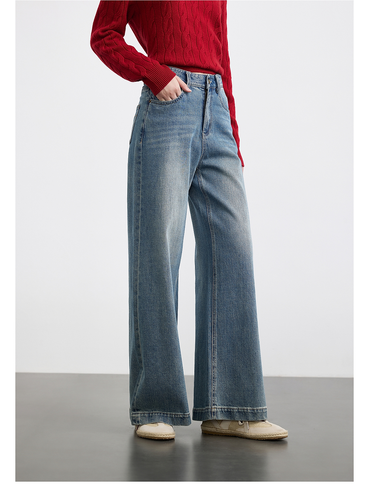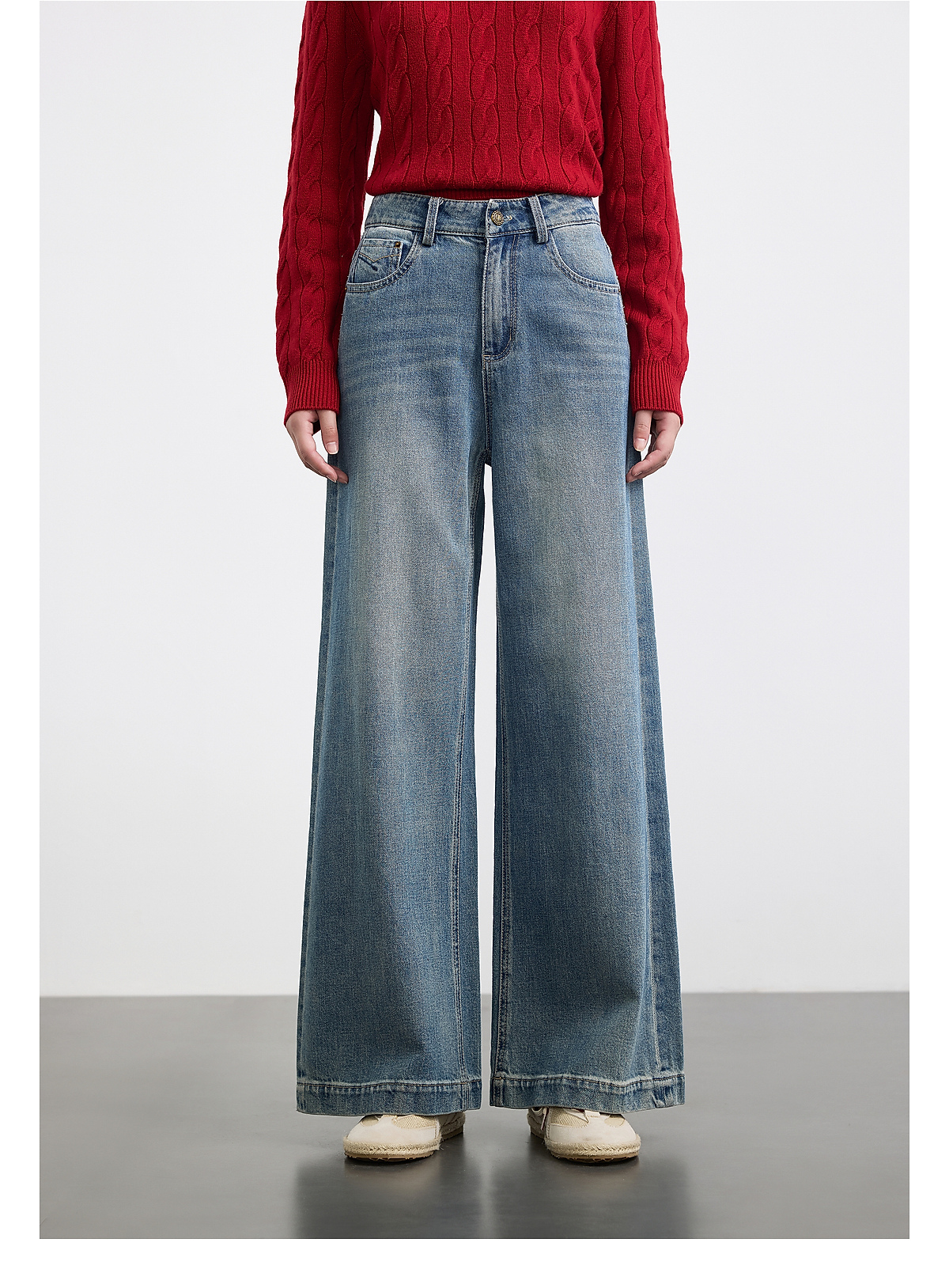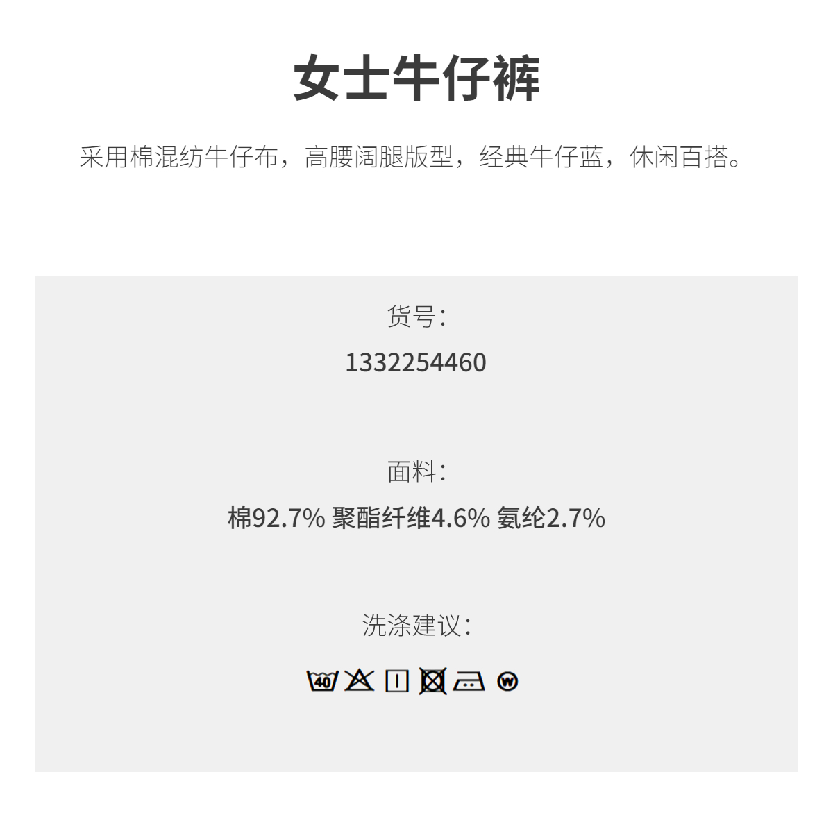 PURE TOUCH女装25秋冬新款高腰牛仔裤宽松阔腿裤棉混纺牛仔蓝长裤