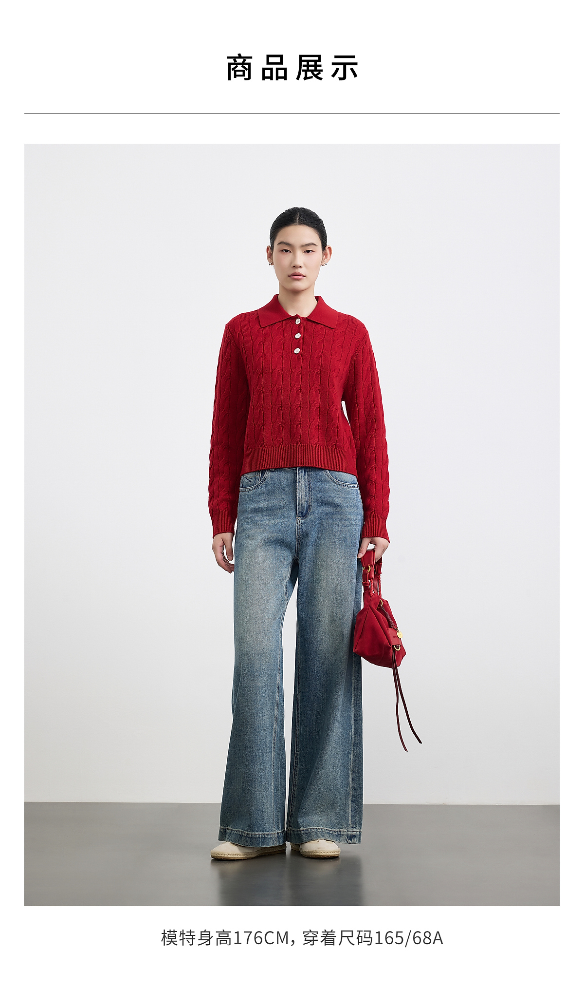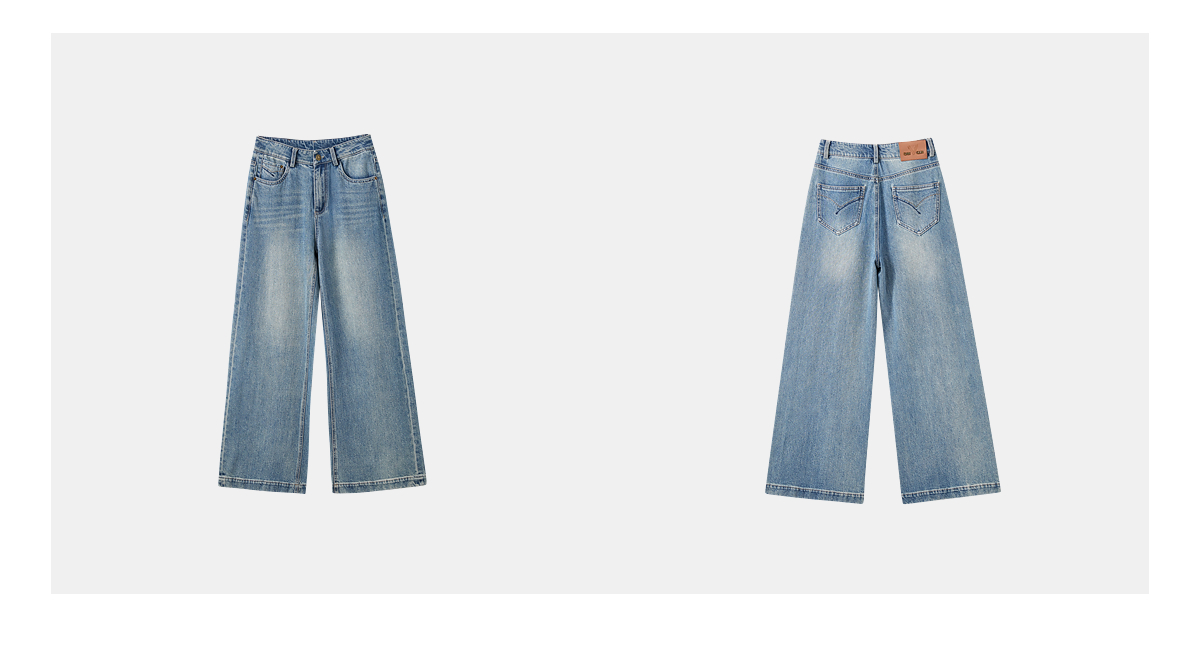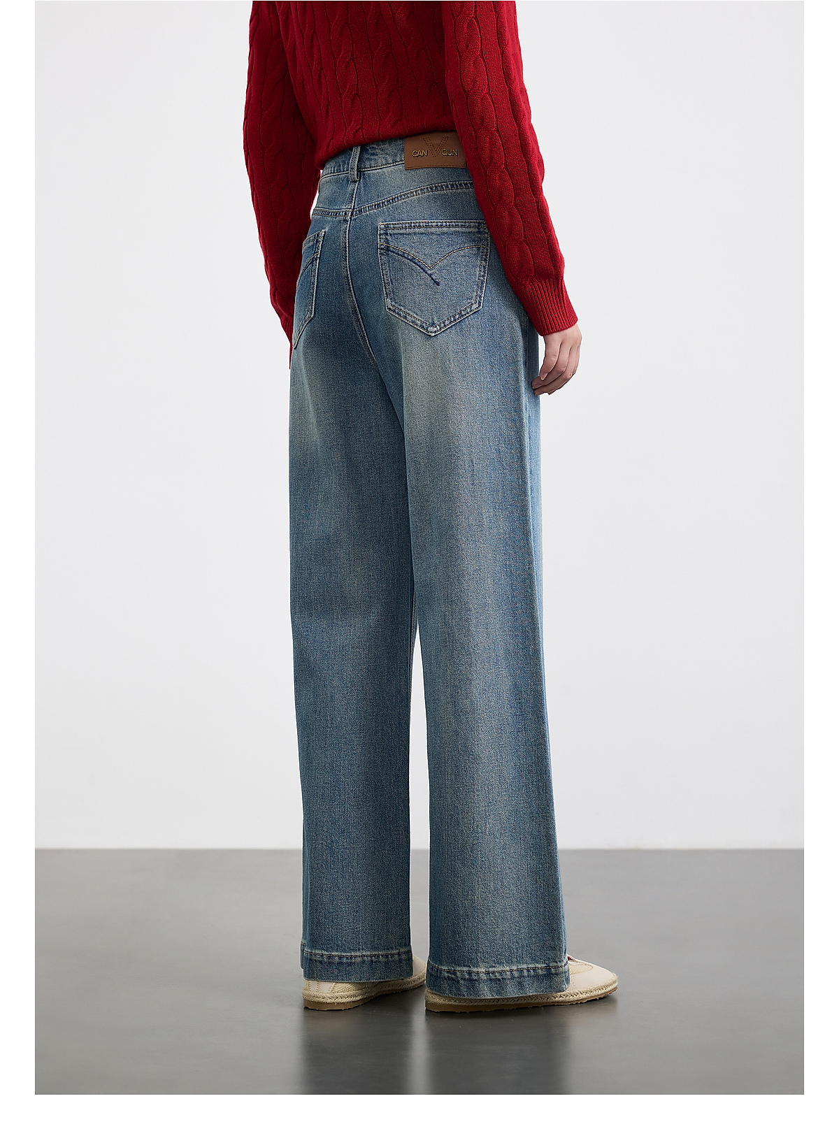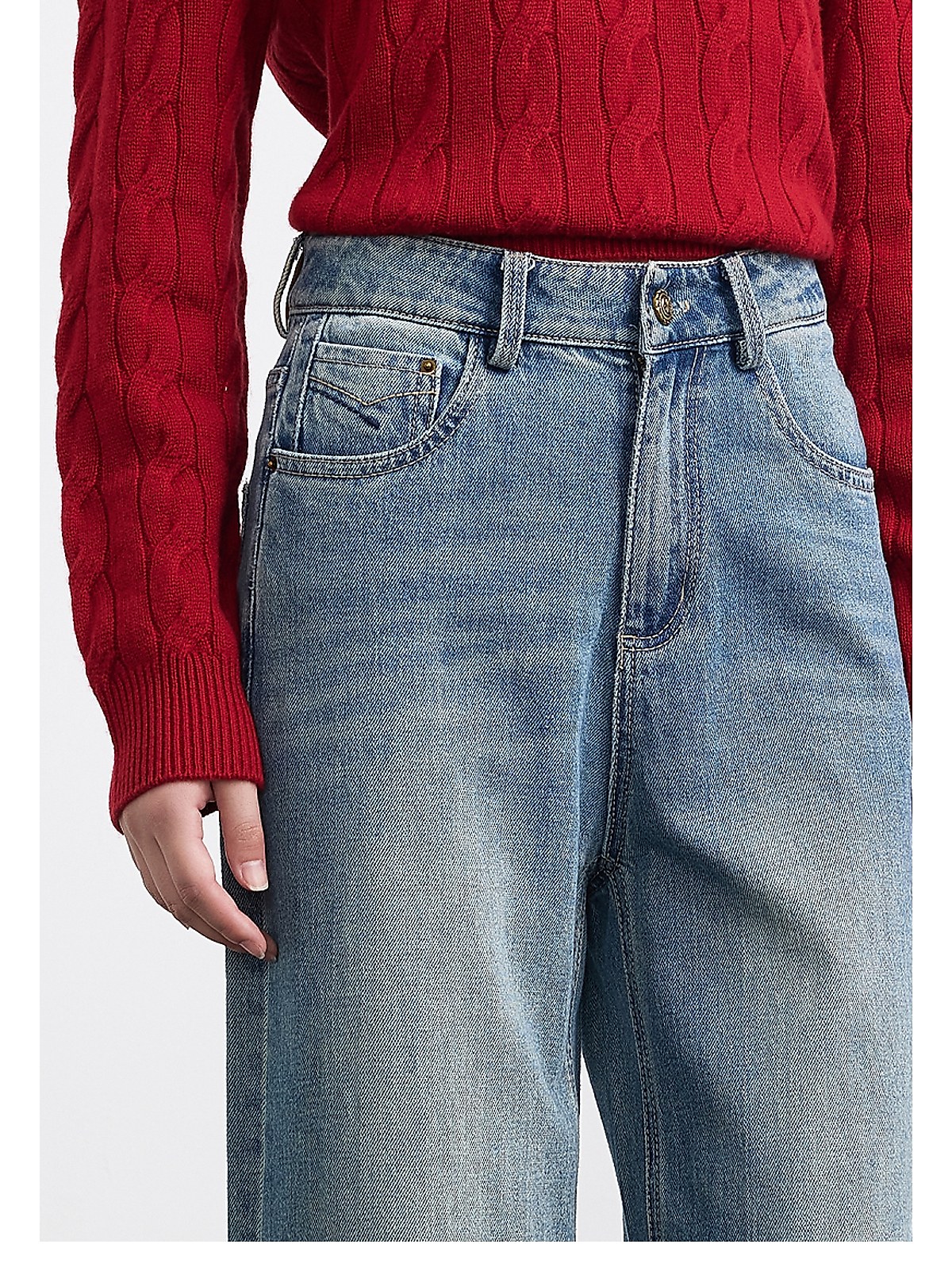 PURE TOUCH女装25秋冬新款高腰牛仔裤宽松阔腿裤棉混纺牛仔蓝长裤