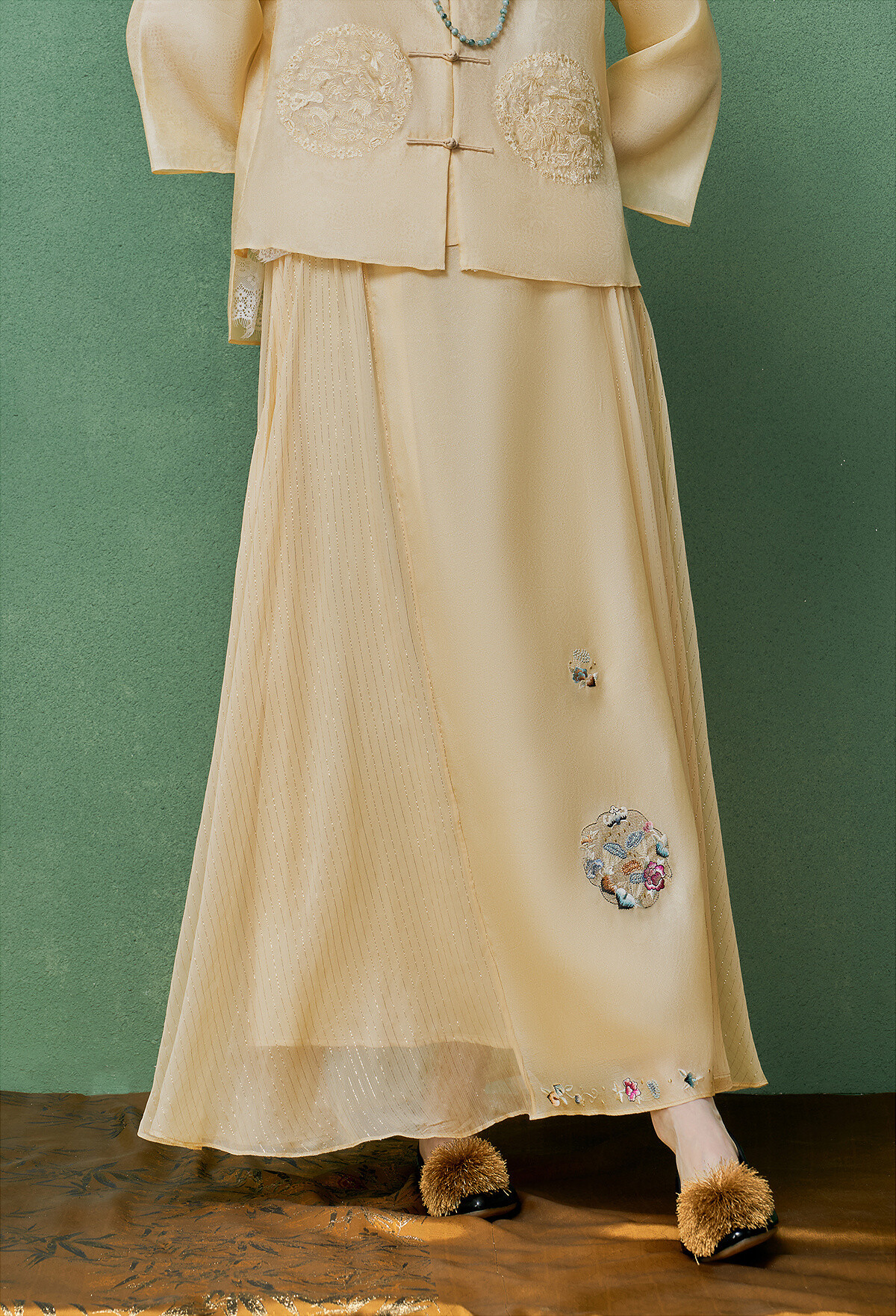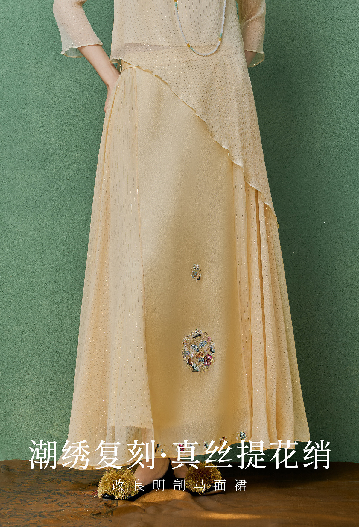 【林栖设计小店】孟庭苇同款真丝轻凉马面裙绣花优雅收腰新中式2025夏季新品半身裙女1952020