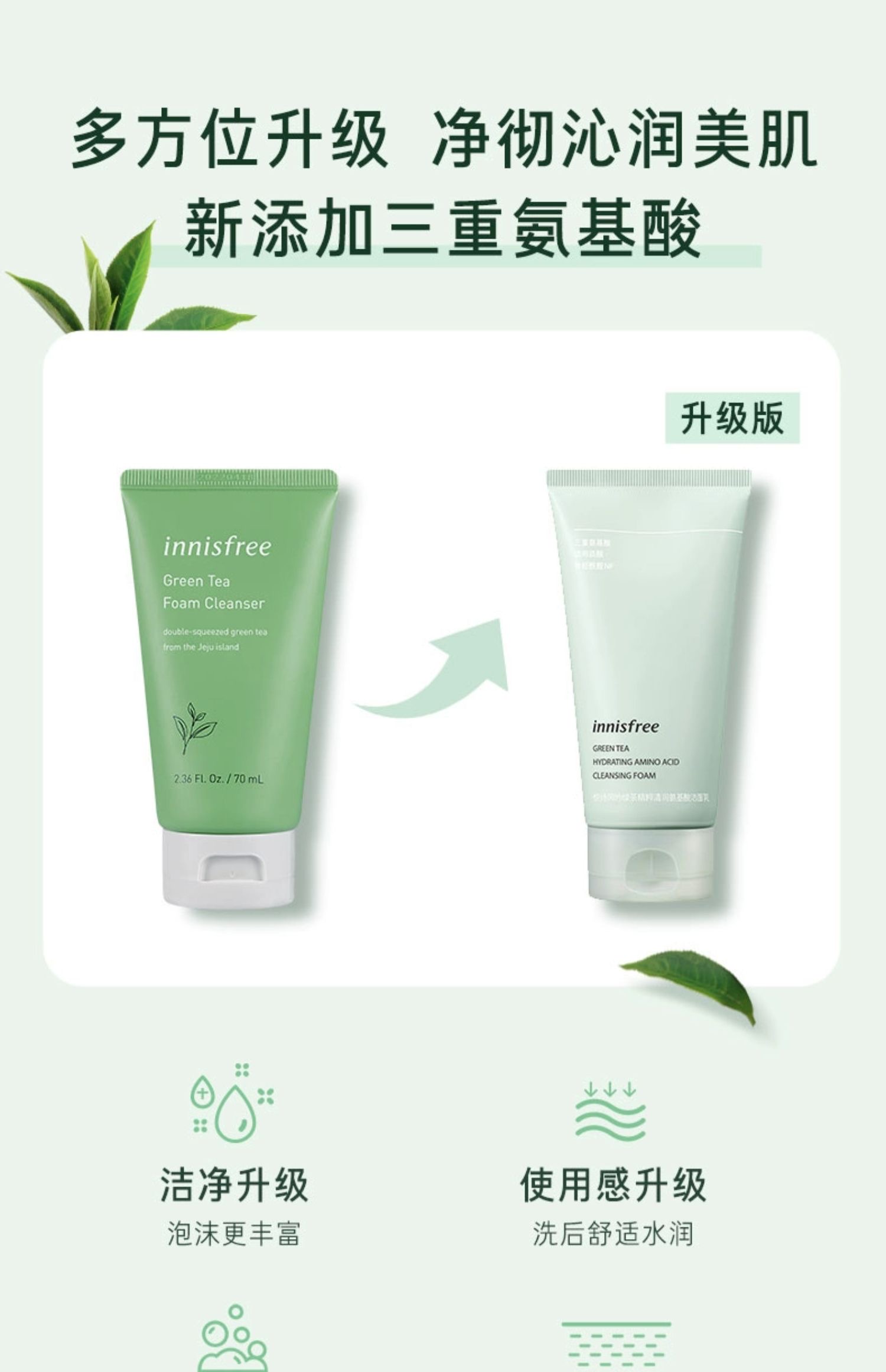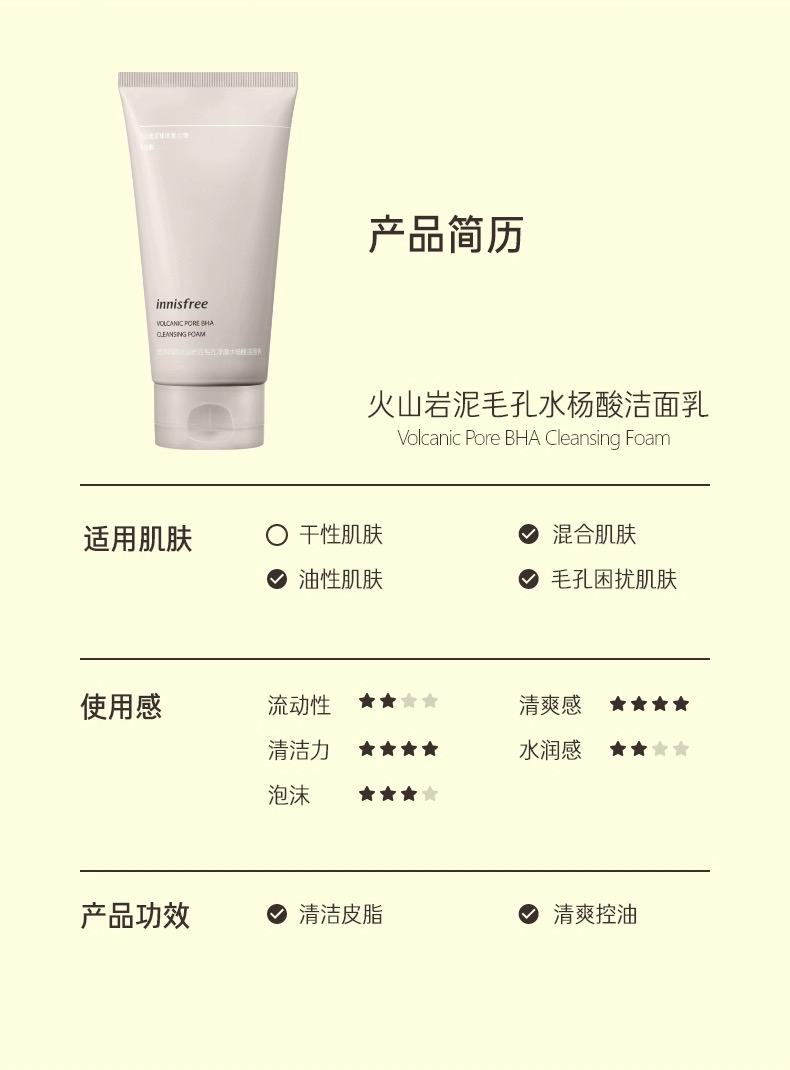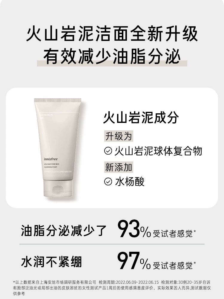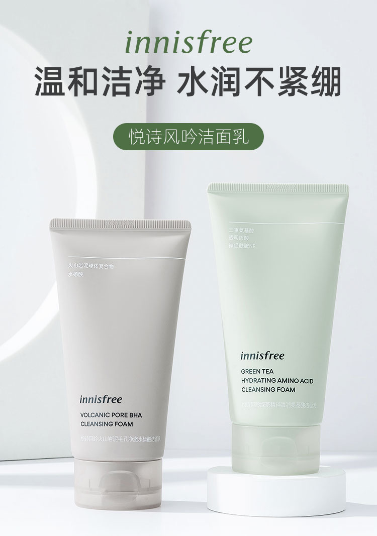innisfree悦诗风吟新升级绿茶氨基酸火山泥水杨酸洗面奶150ml控油保湿