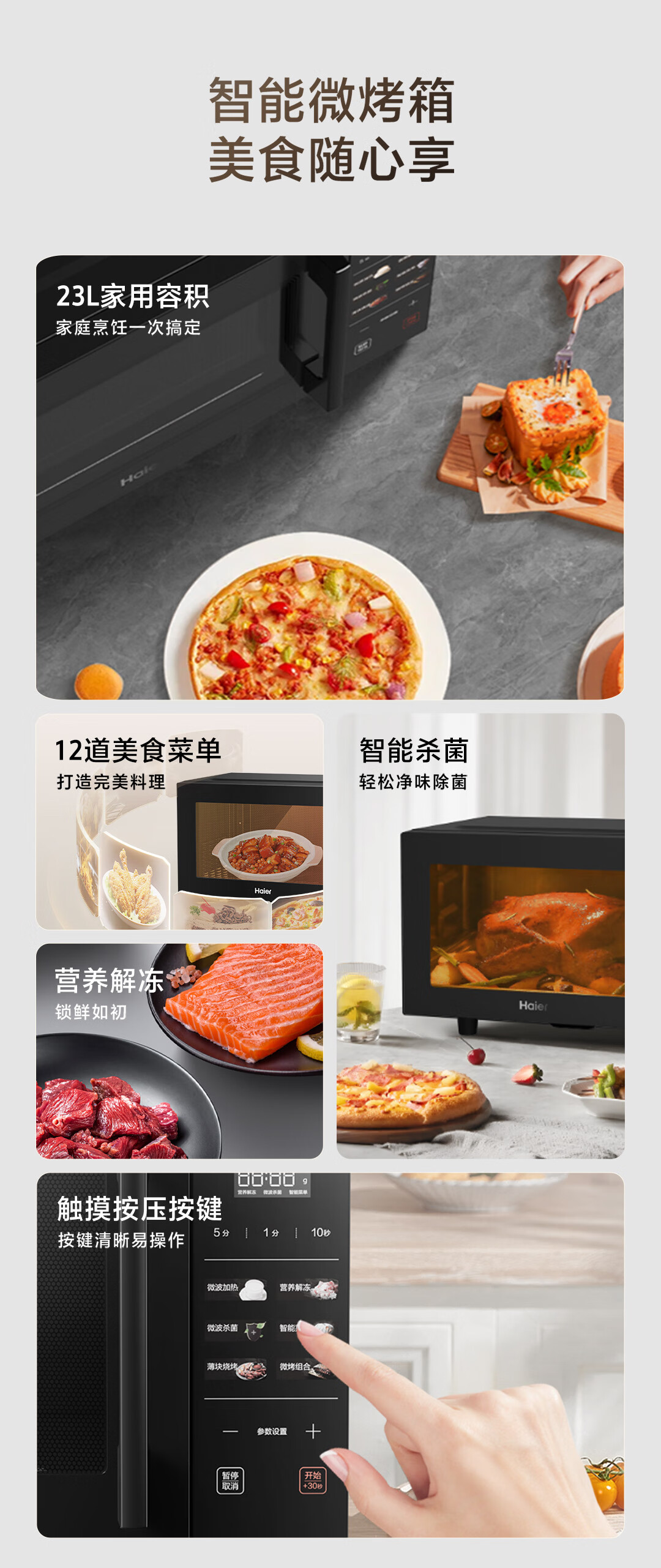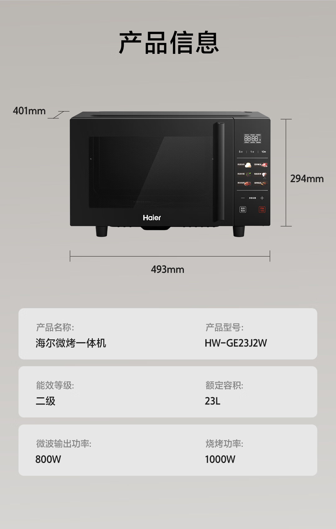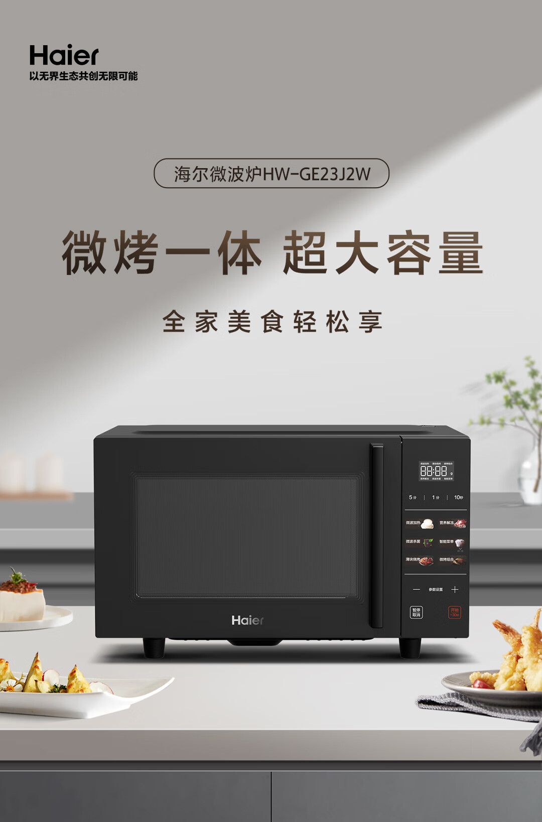 海尔23L微波炉家用小型迷你平板速热微烤一体机HW-GE23J2W