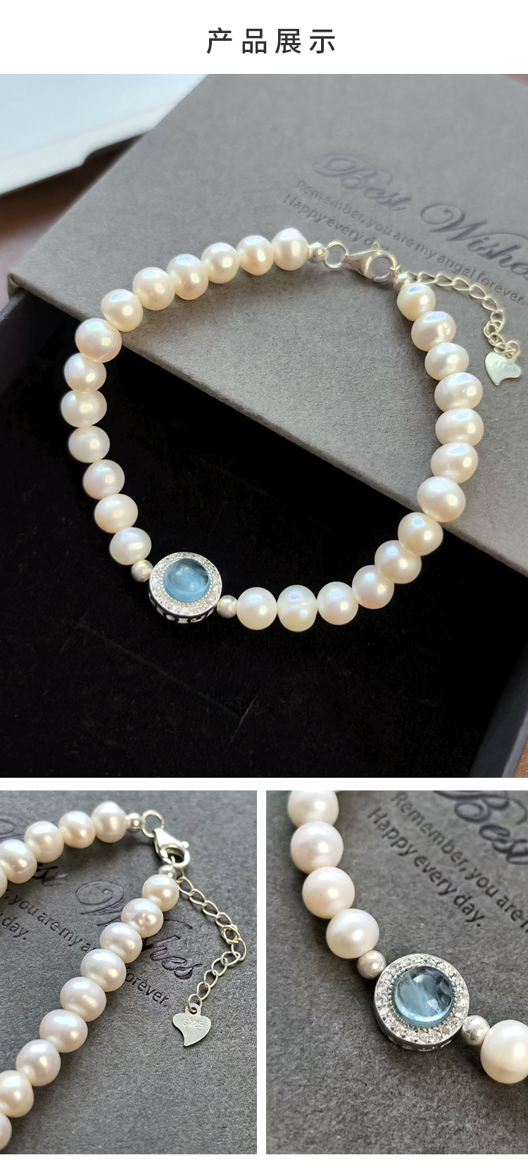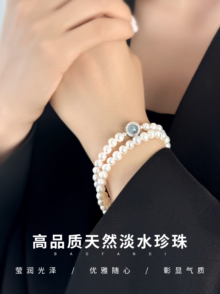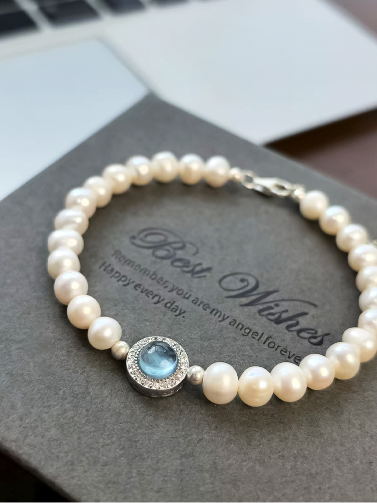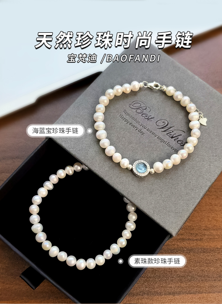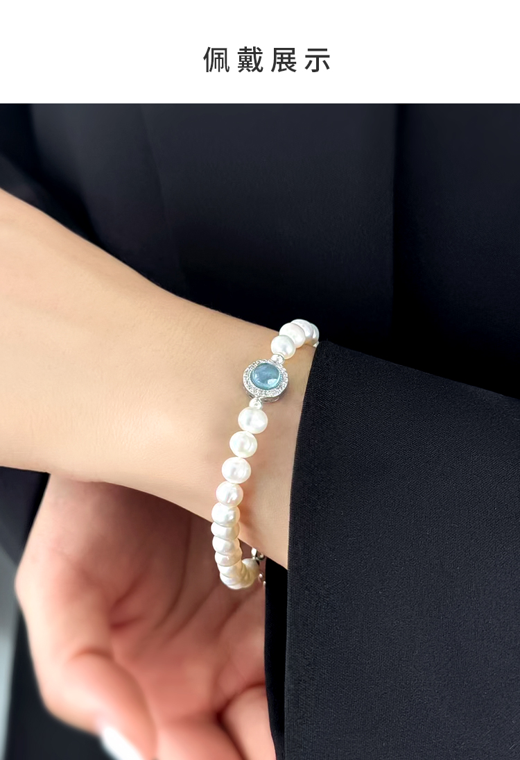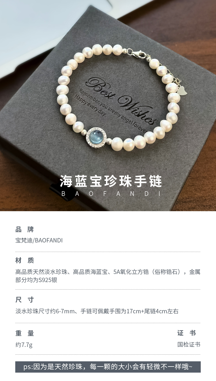 BAOFANDI宝梵迪清新甜美新款天然淡水珍珠海蓝宝法式轻奢手串BF