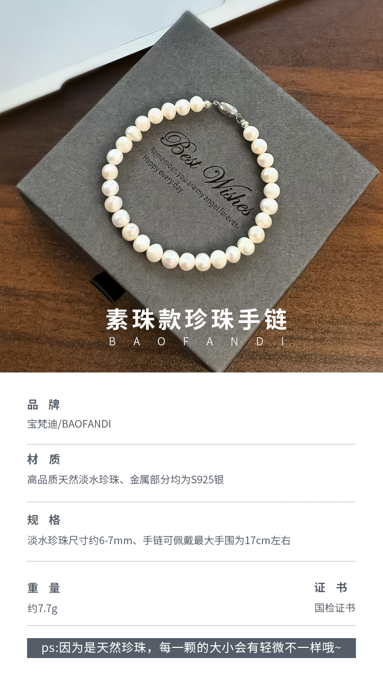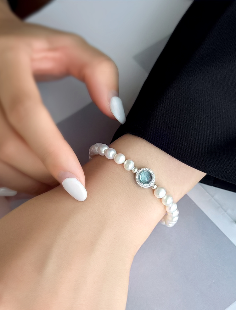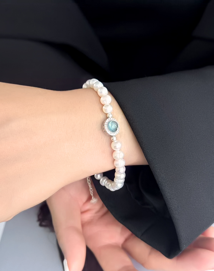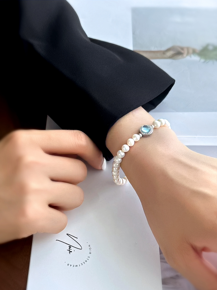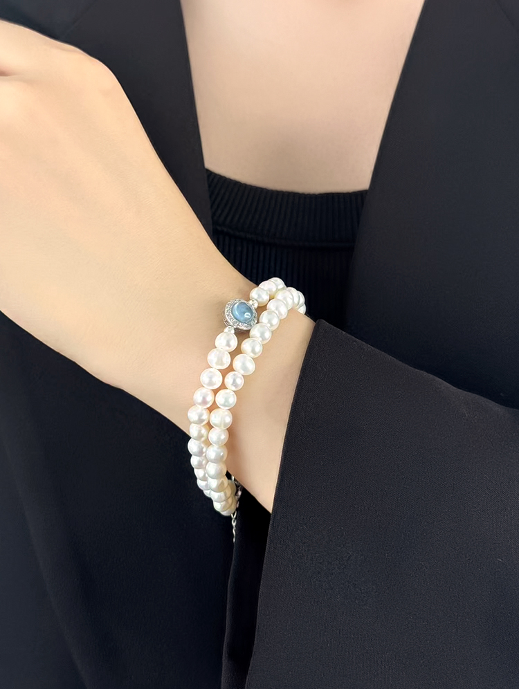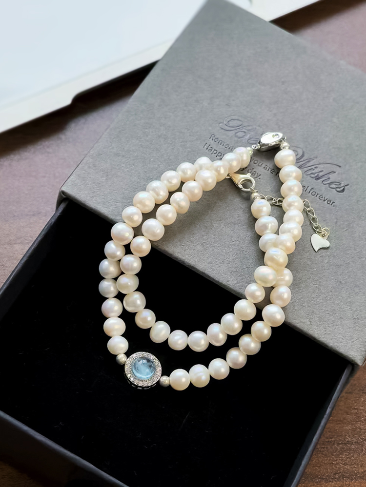 BAOFANDI宝梵迪清新甜美新款天然淡水珍珠海蓝宝法式轻奢手串BF
