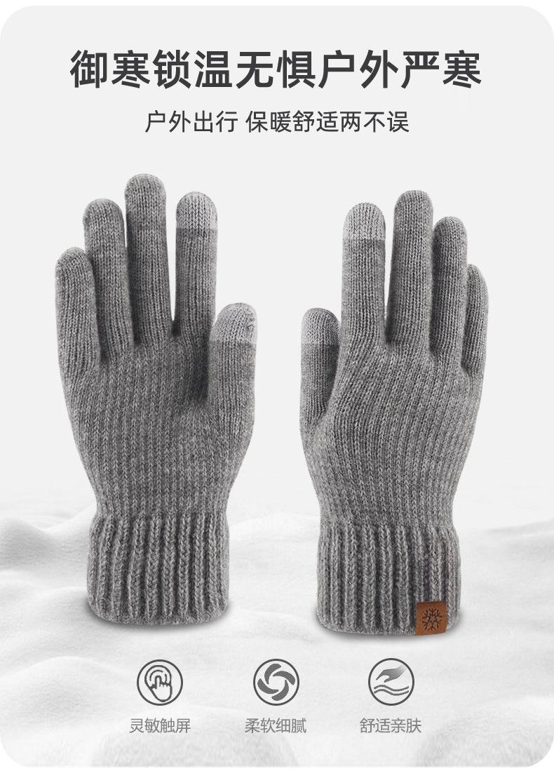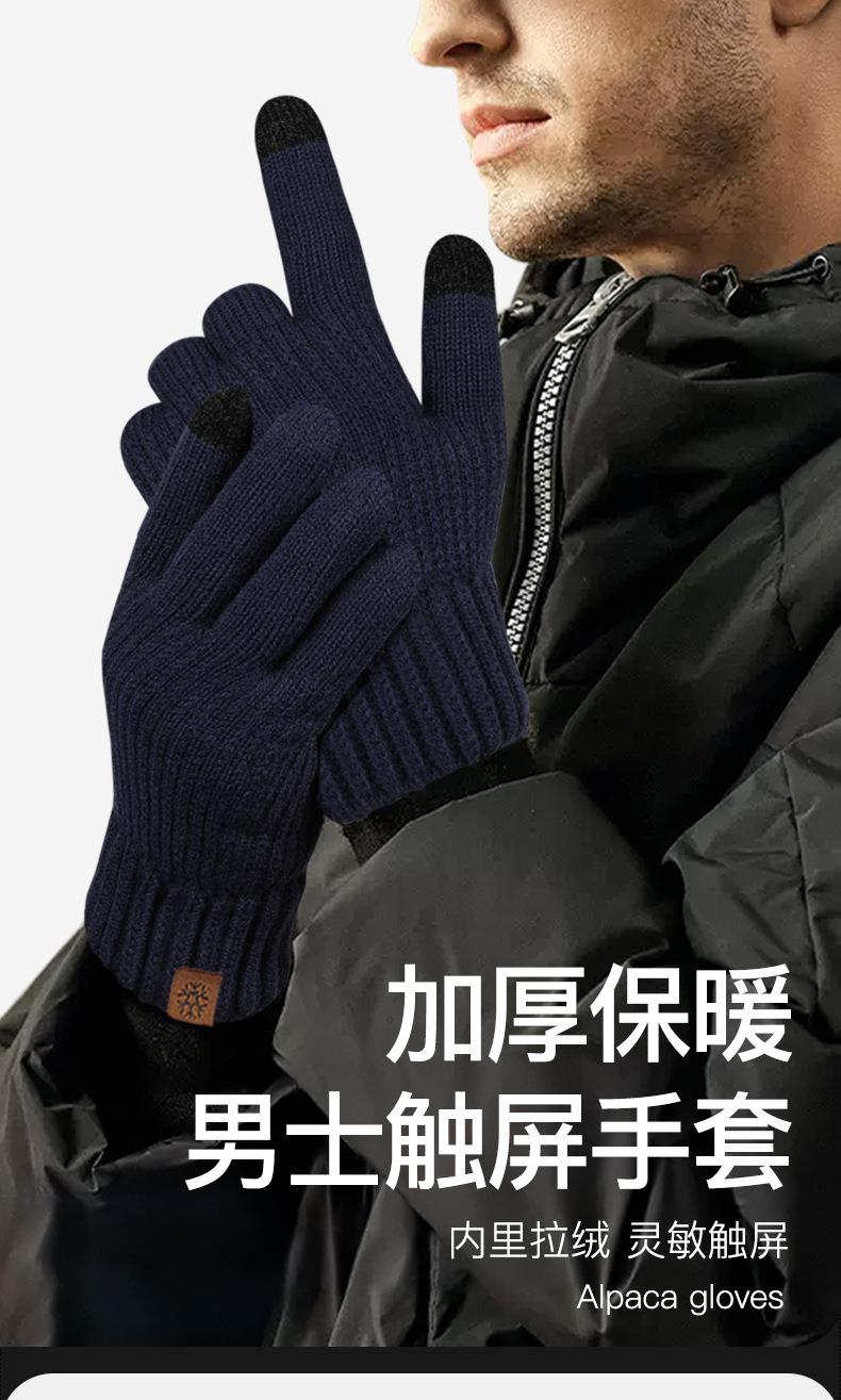 冬季手套男保暖防寒触屏手套户外双层防寒加厚加绒针织手套