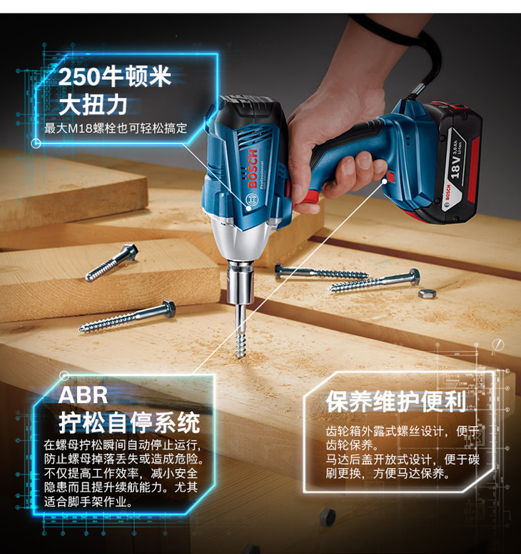 博世(BOSCH)18v 250牛顿米锂电冲击扳手GDS 250-Ll(两块电池) 商品图0