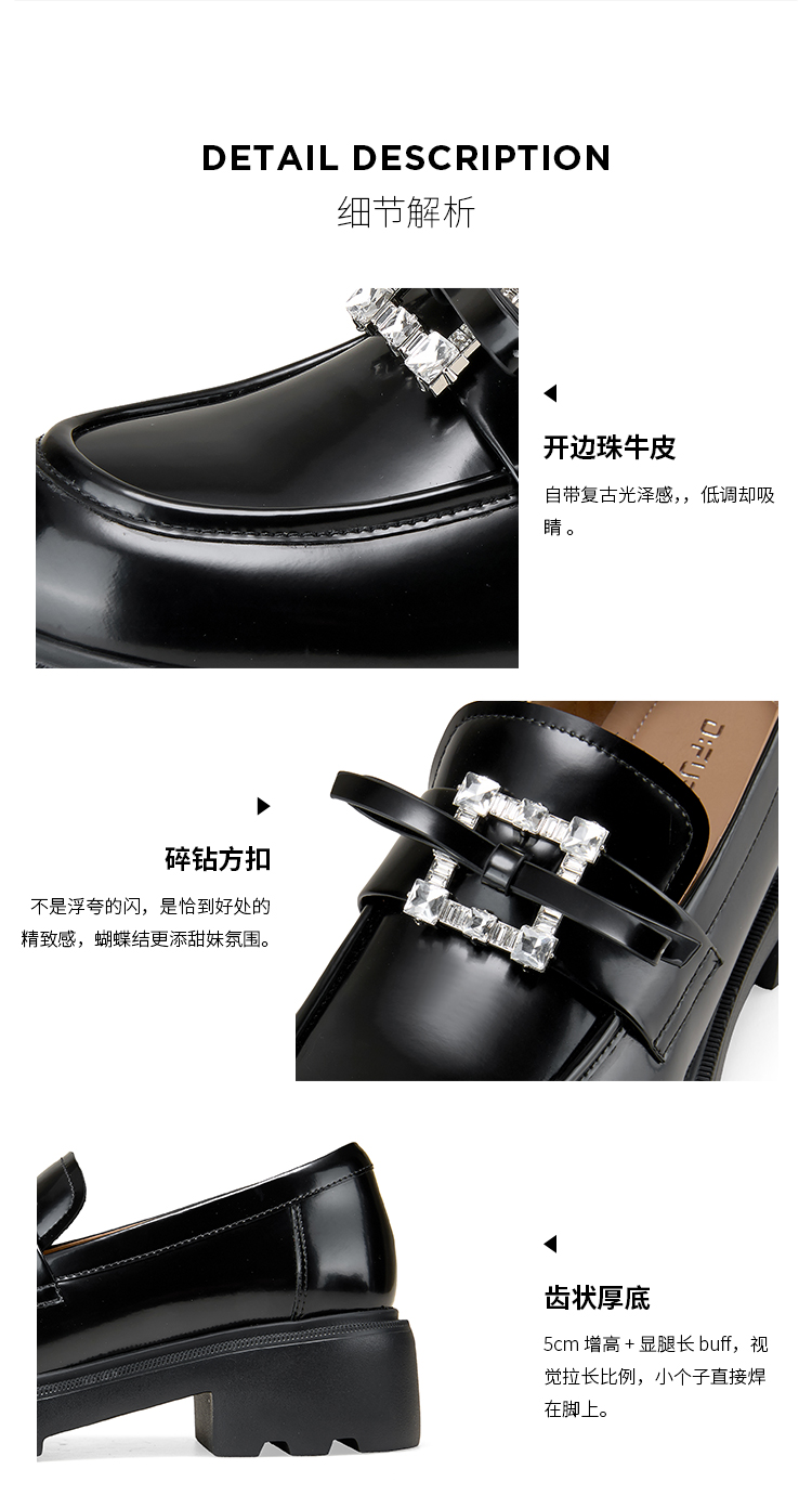 Dfuse迪芙斯2026春季新款蝴蝶结方钻扣深口单鞋经典休闲乐福鞋通勤鞋女单鞋DFE1112118