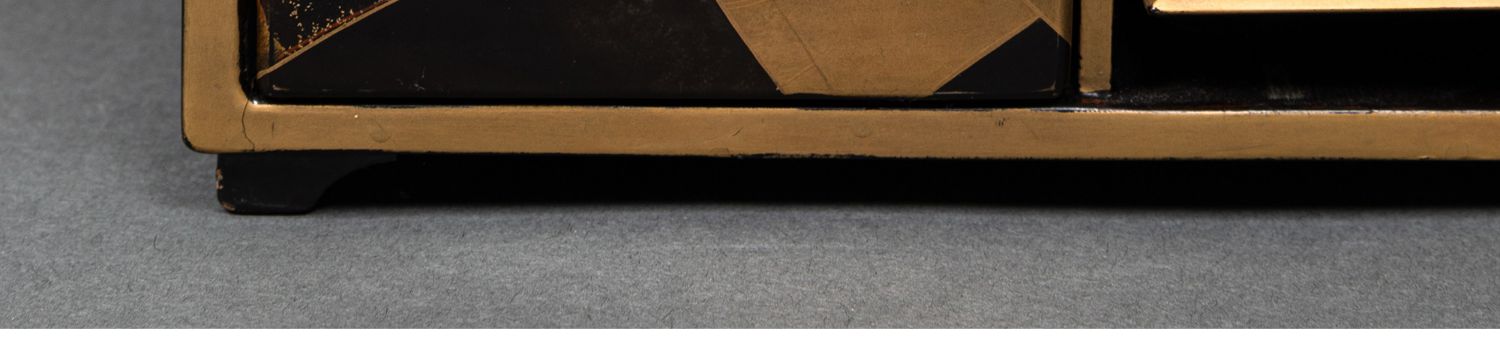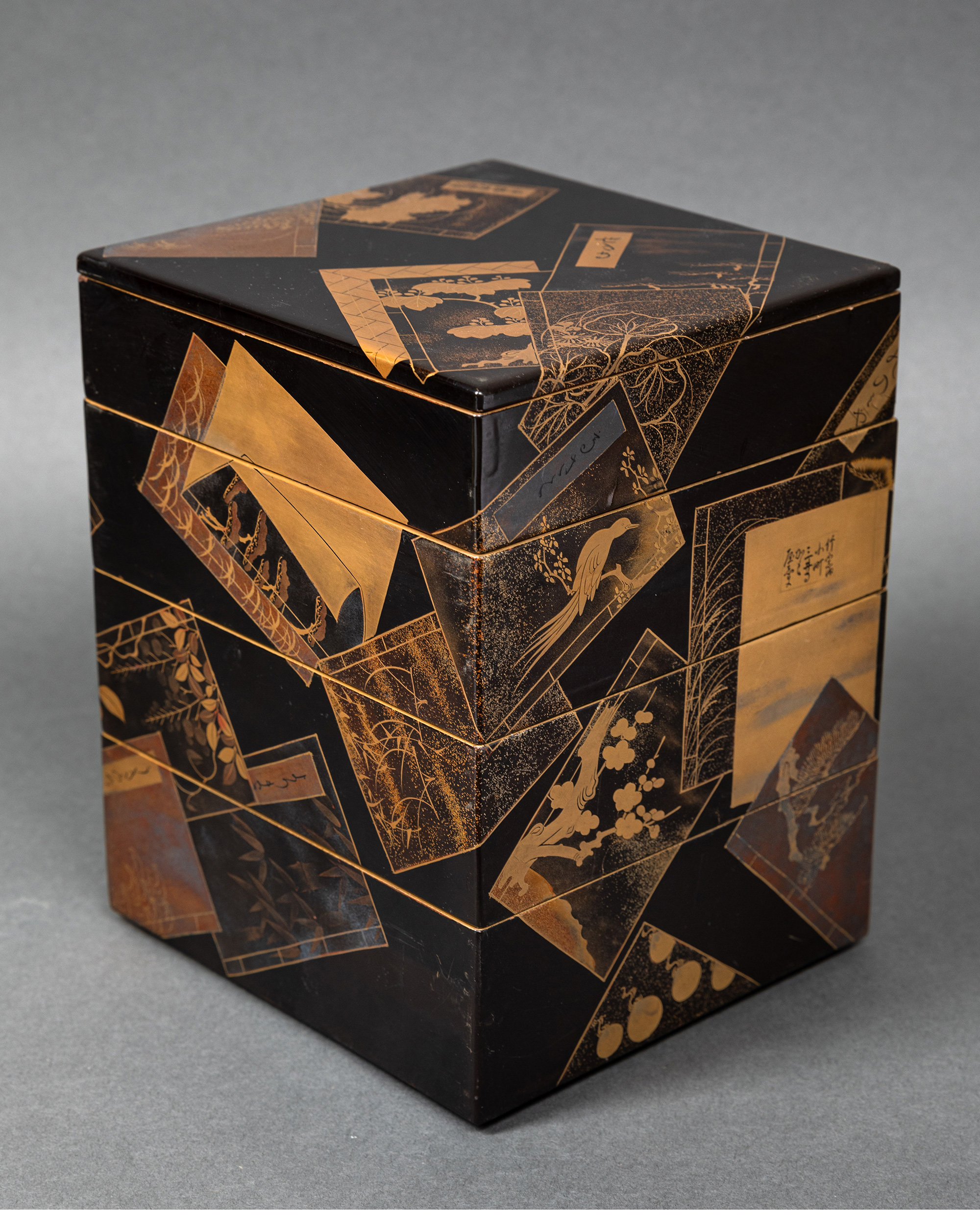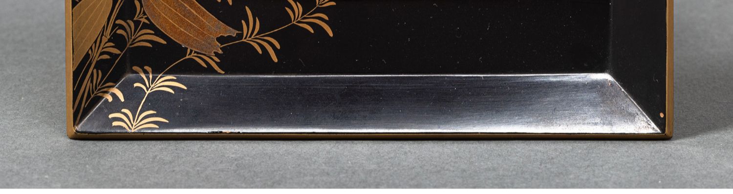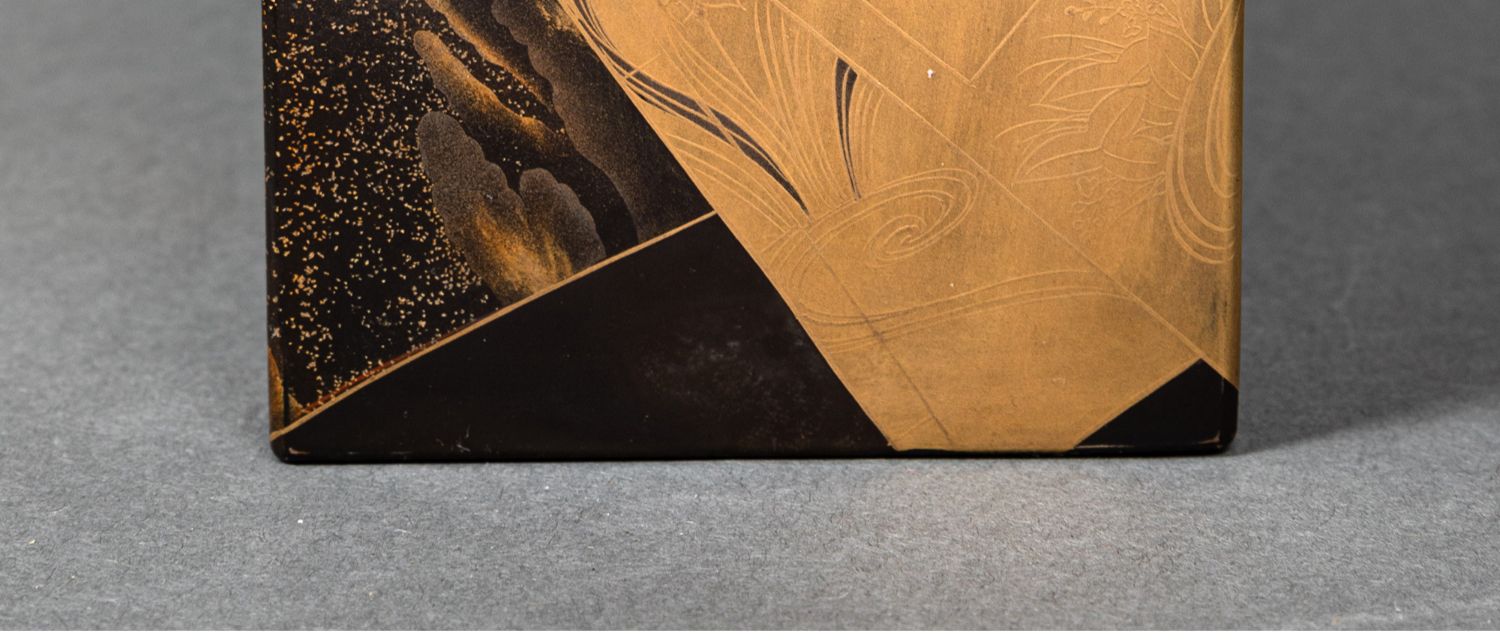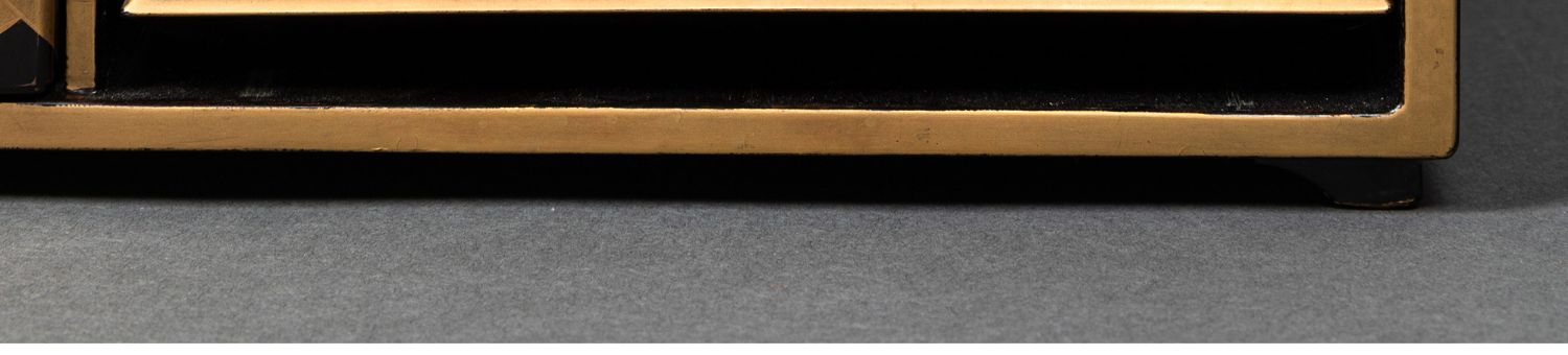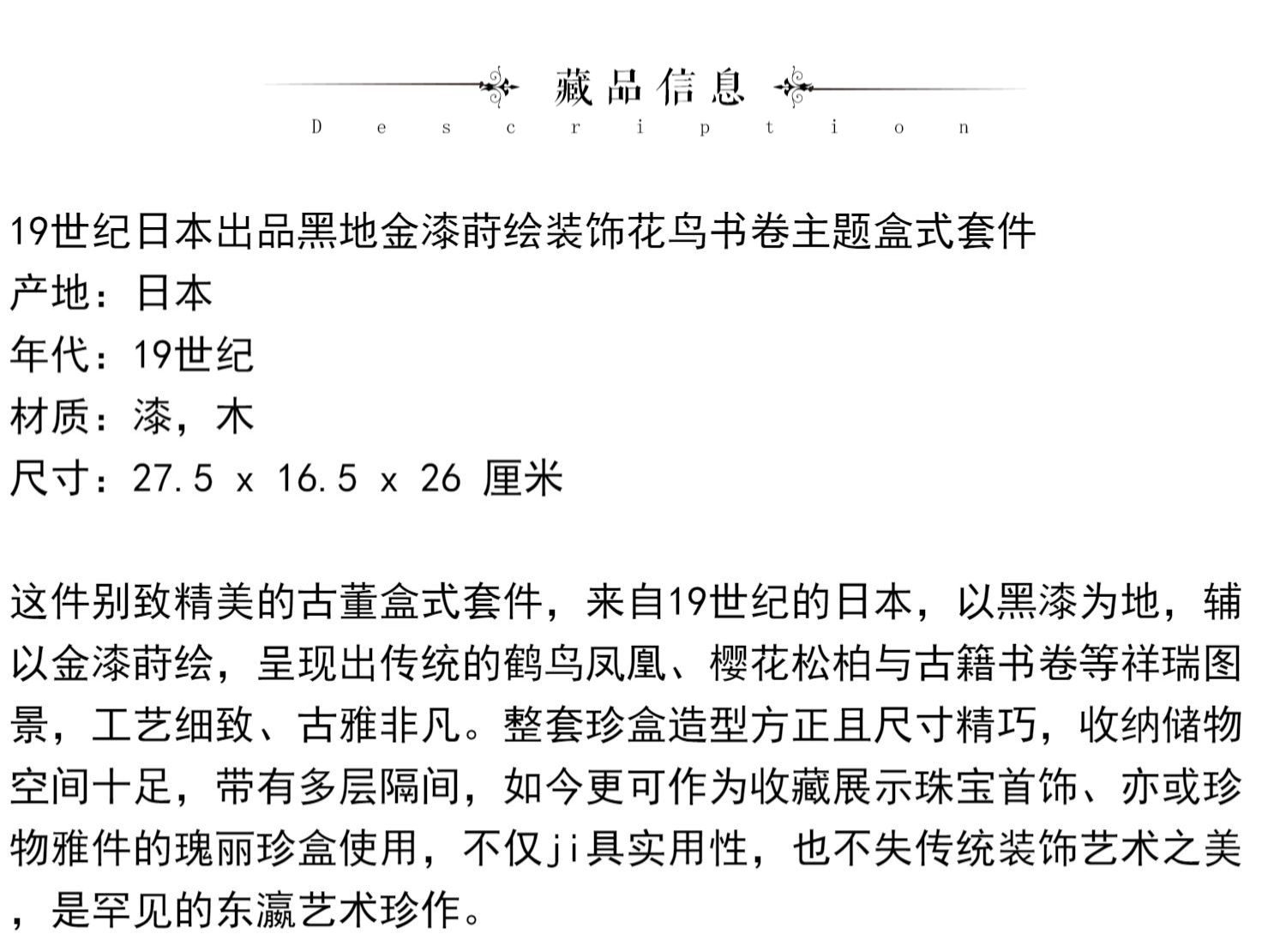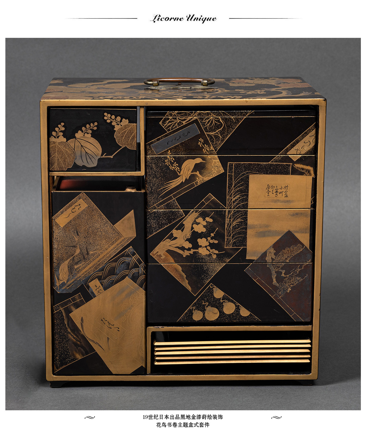 独角鹿西洋古董日本黑地金漆莳绘装饰花鸟书卷主题盒式套件