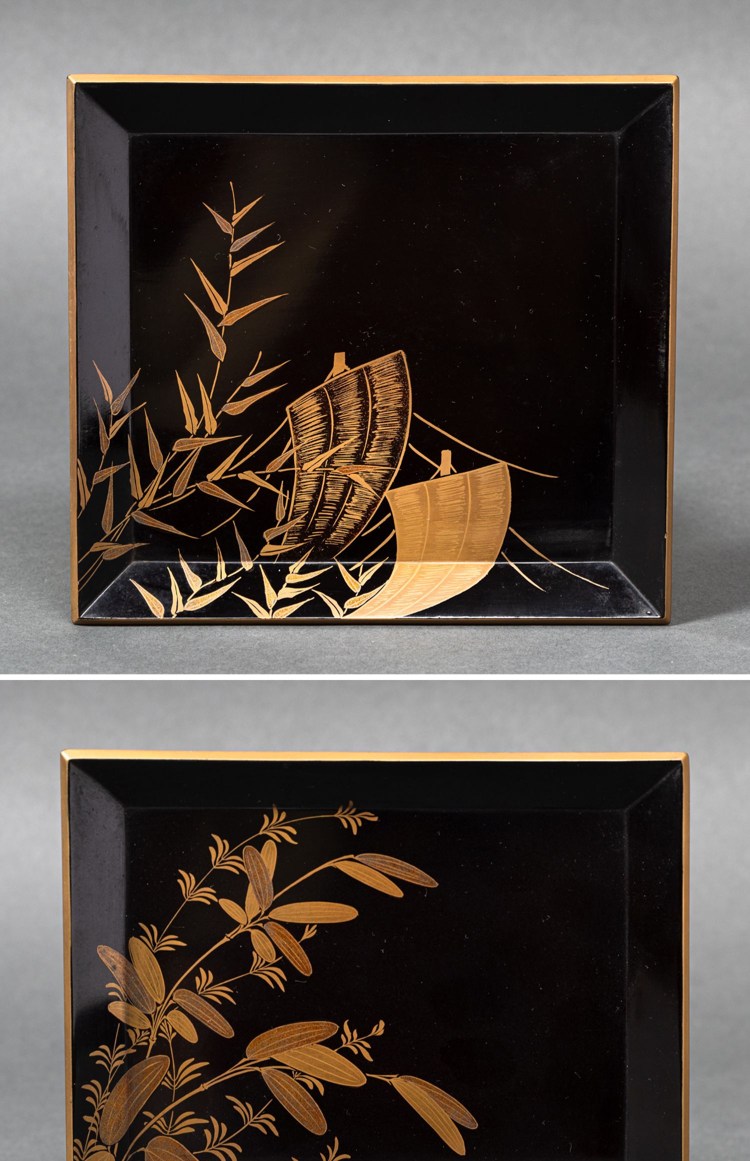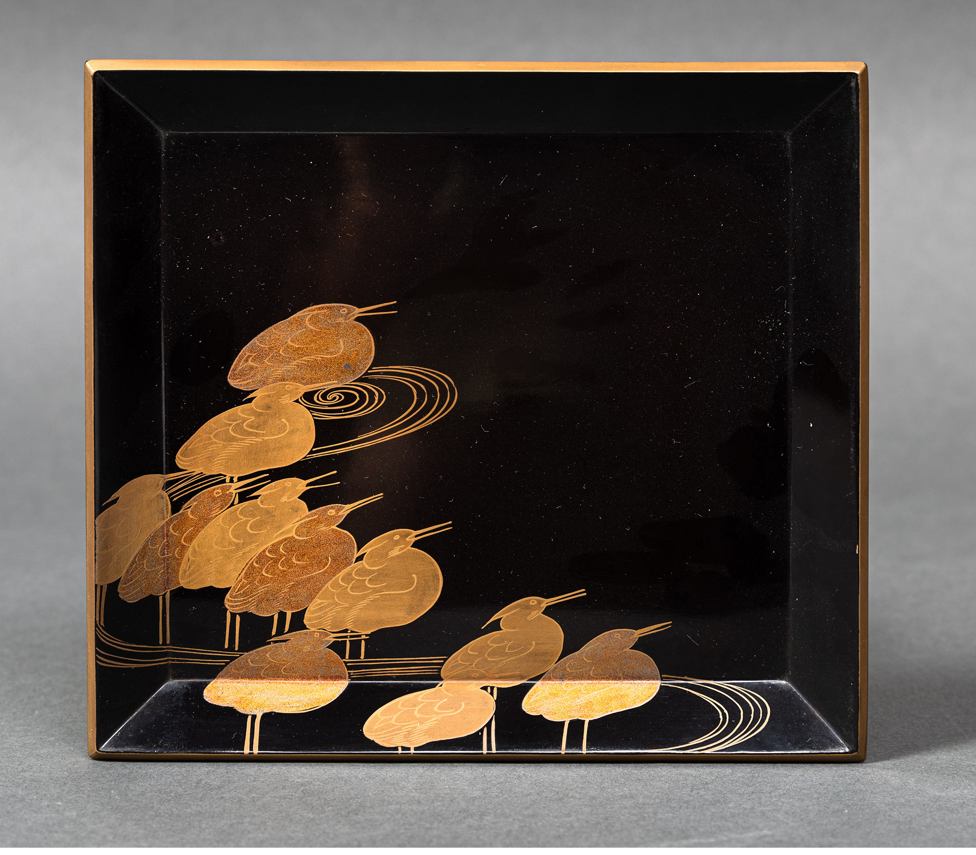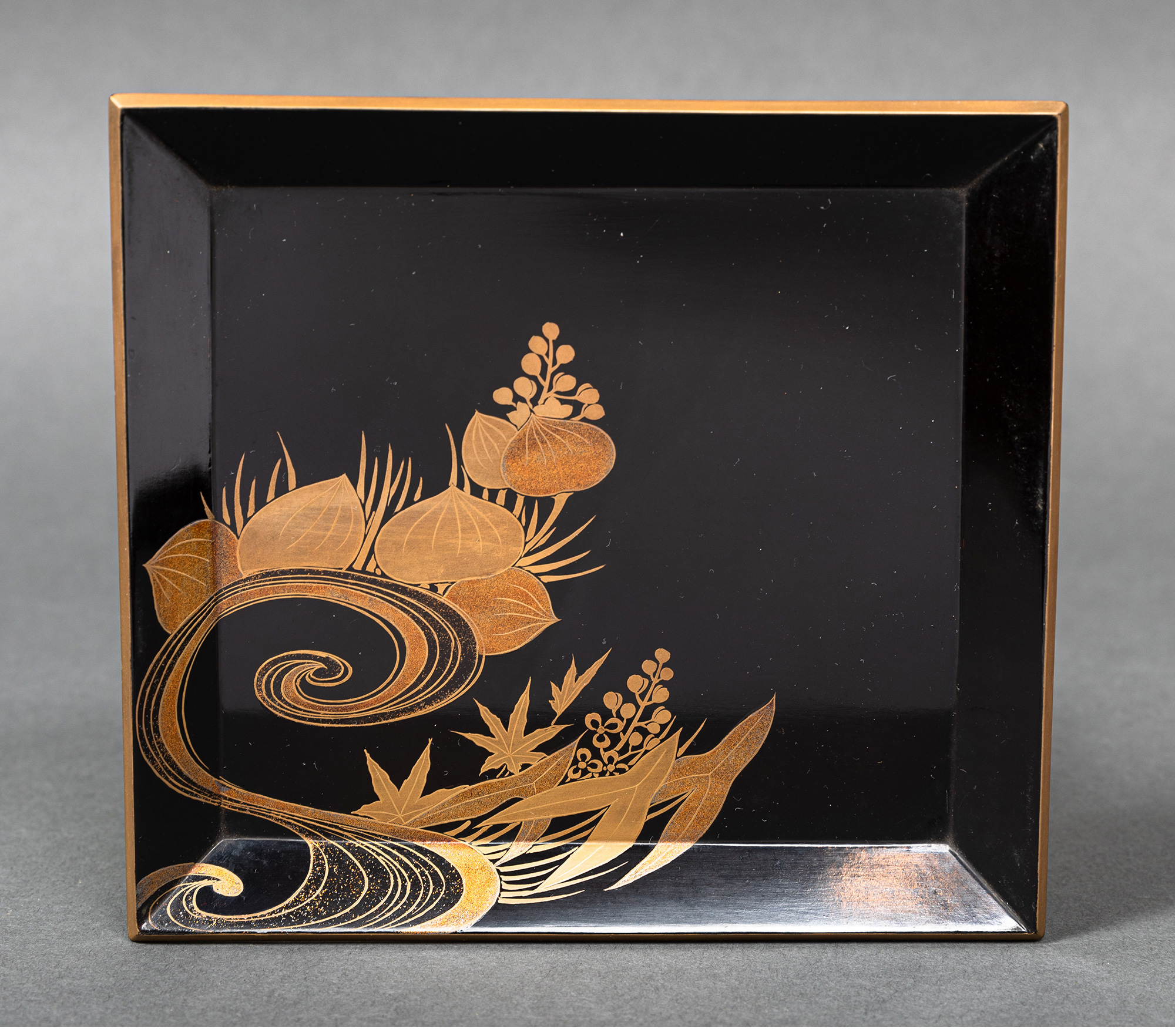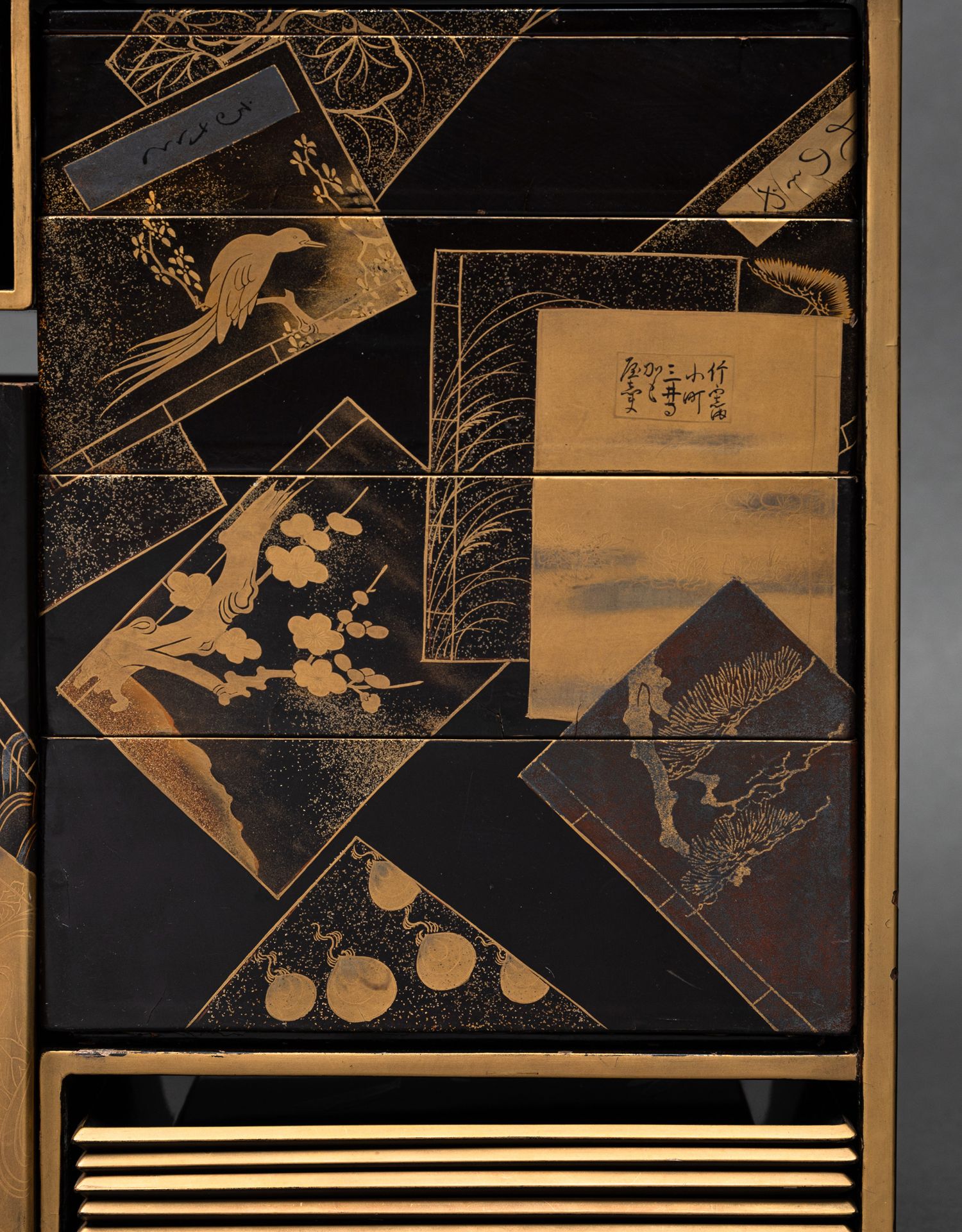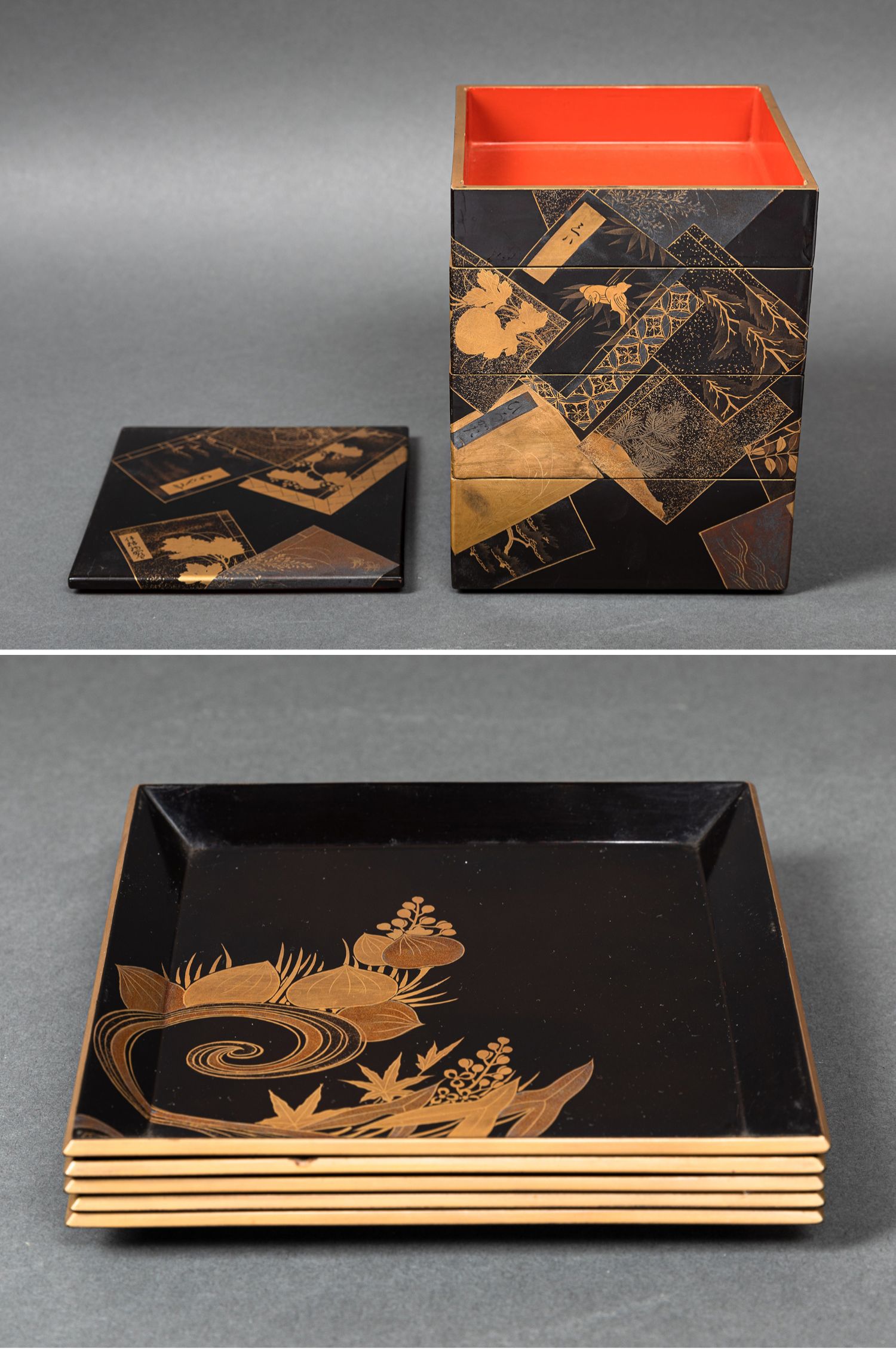 独角鹿西洋古董日本黑地金漆莳绘装饰花鸟书卷主题盒式套件