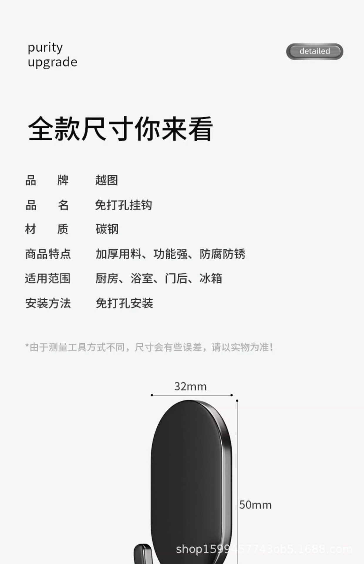 无痕强力免打孔厨房不锈钢门后上钩子粘胶挂钩承重贴浴室粘钩墙壁