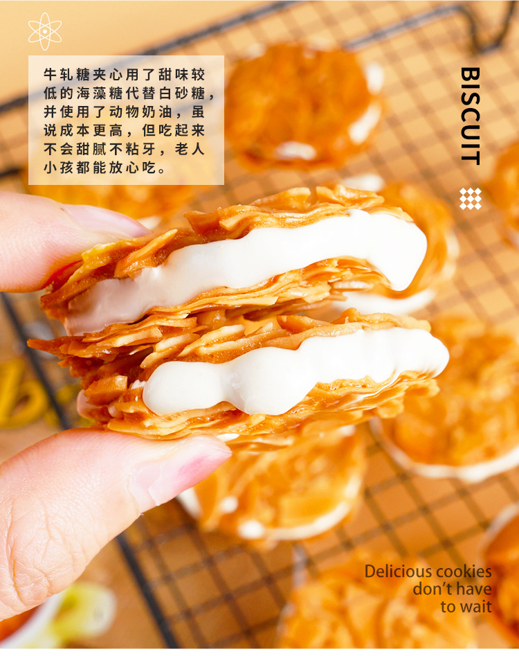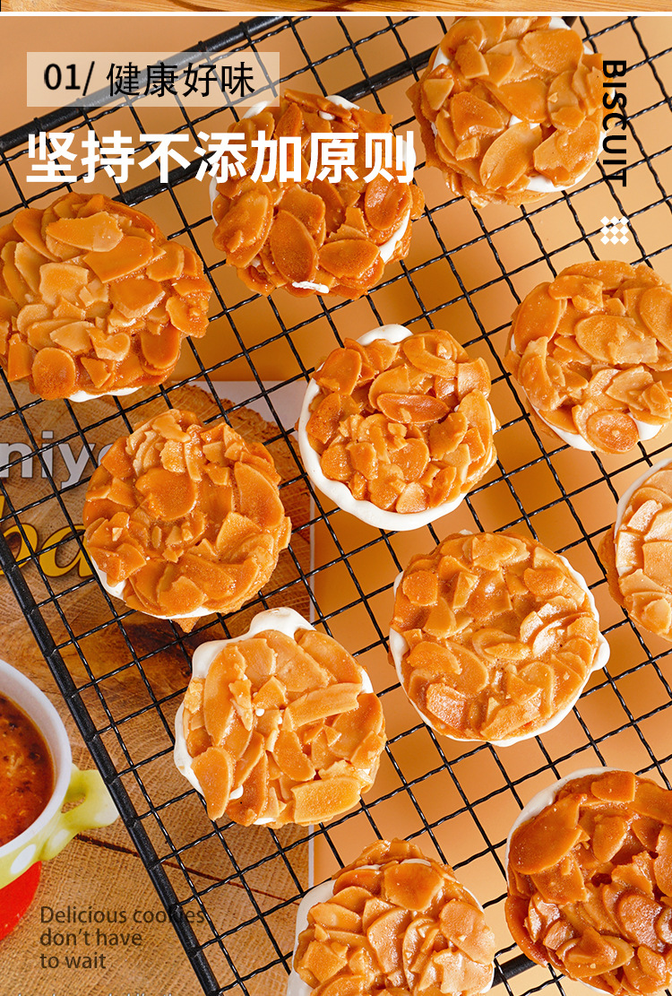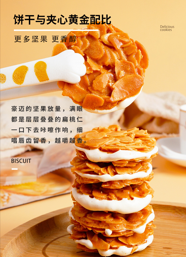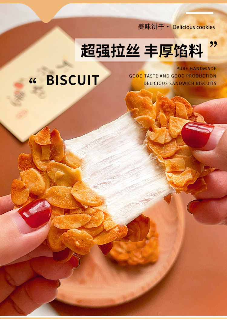【手工制作,扁桃仁夹心饼干】饼干与夹心黄金比例,奶香十足牛轧杏仁夹心坚果饼干,独立包装随拿随吃网红追剧零食下午茶QQ
