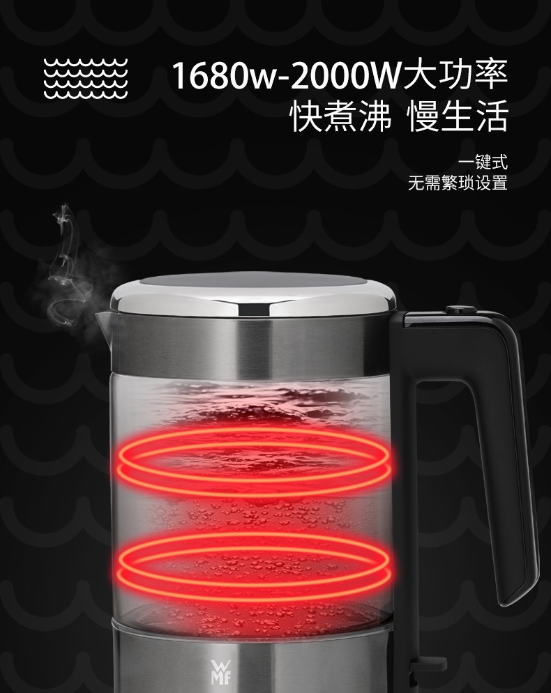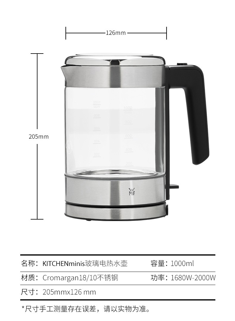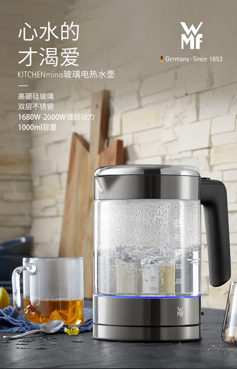 WMF 玻璃电热水壶1.0L 家用热水壶电热水壶煮茶KITCHENminis