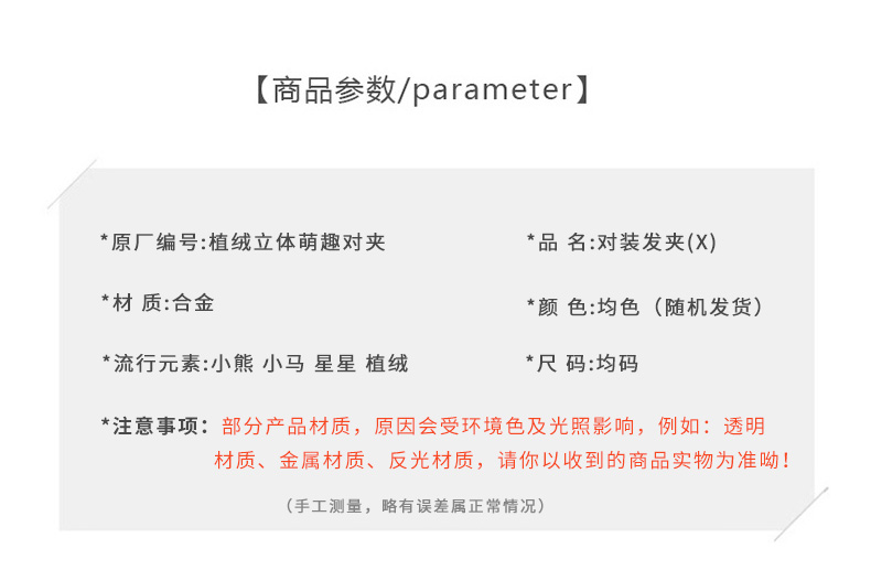 植绒立体萌趣对夹对装发夹-纪念日百货门店同款169447730