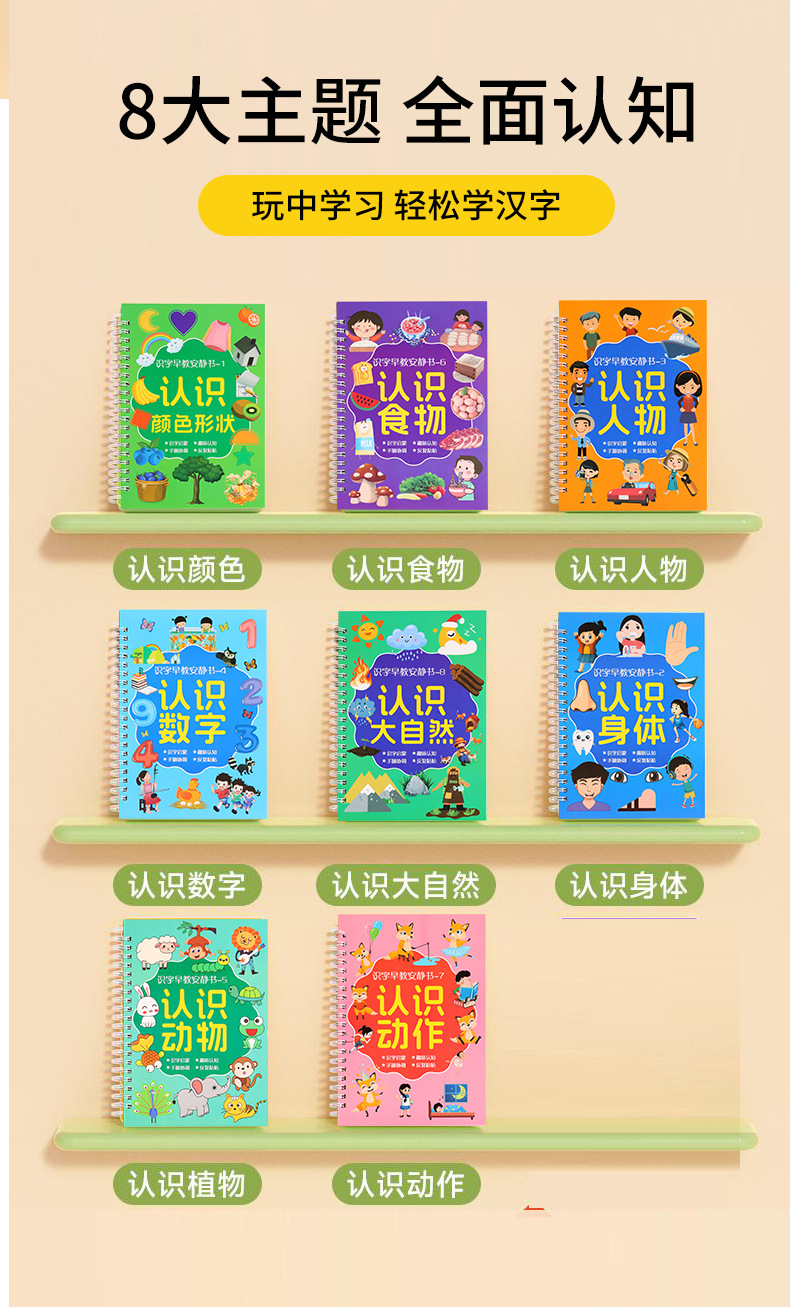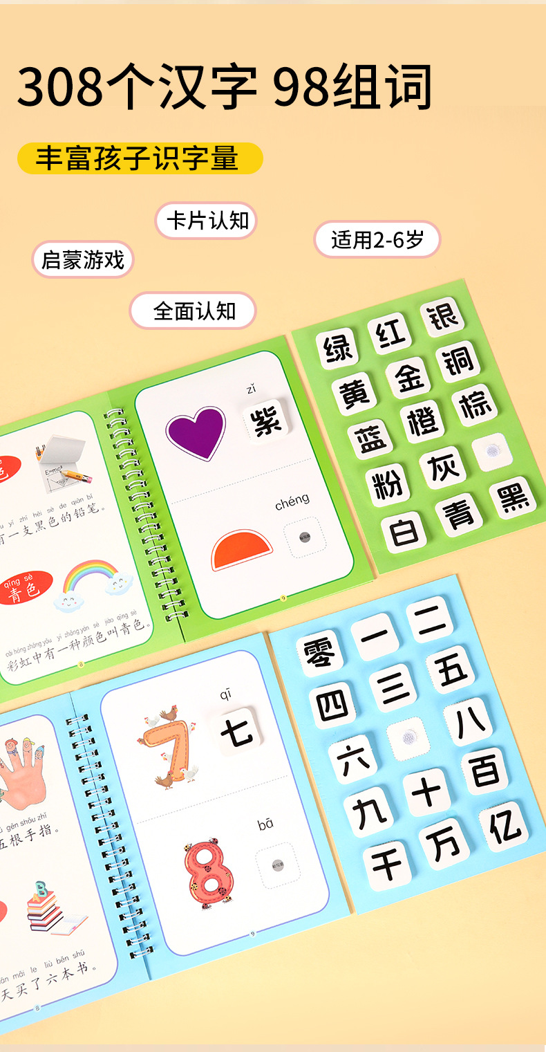 【8大主题 轻松学汉字】幼儿识字早教安静书 308个汉字 丰富孩子识字量 看图识字 科学引导 让宝宝安静下来 锻炼专注力