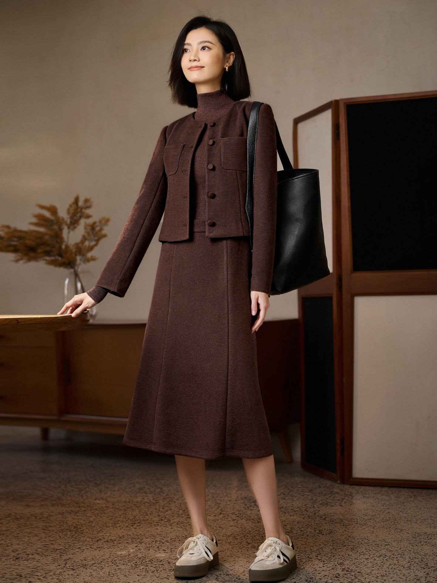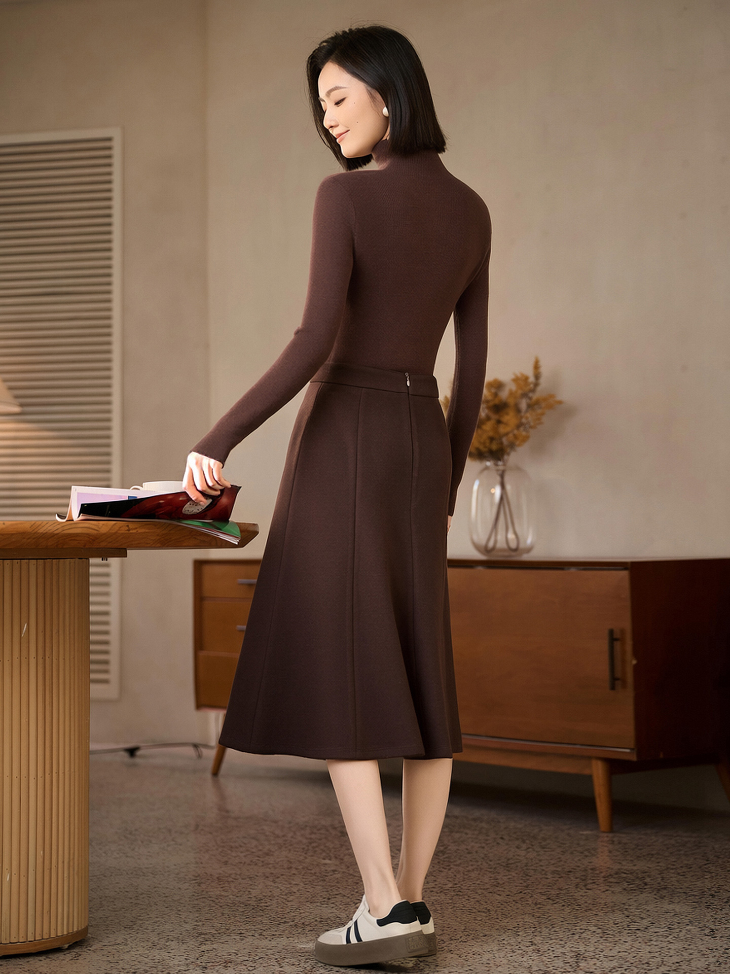 醋酸羊毛鱼尾裙 绒感锁温 定烫不易变形 米思阳2026春新款优雅高腰显瘦中长款半身裙女5694