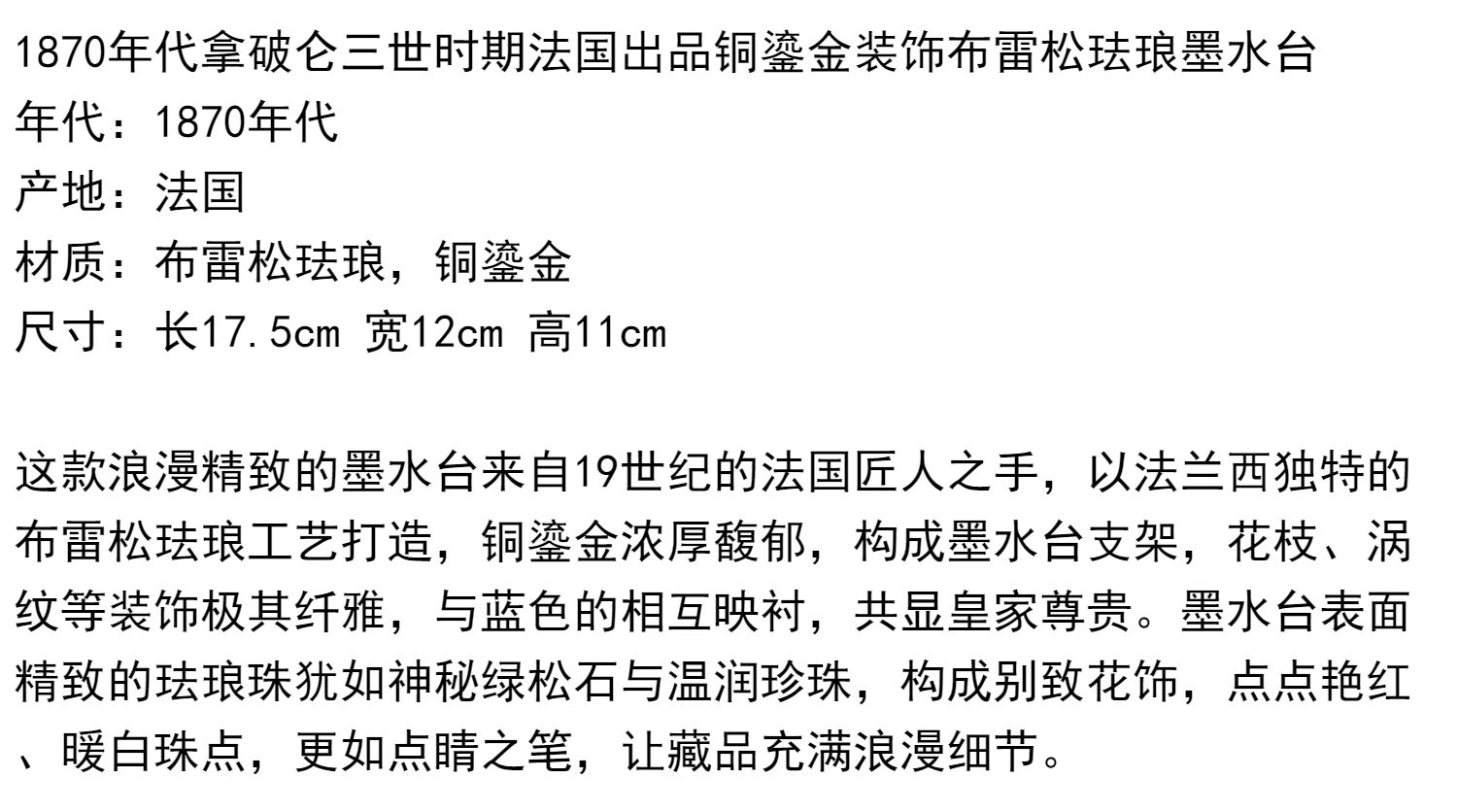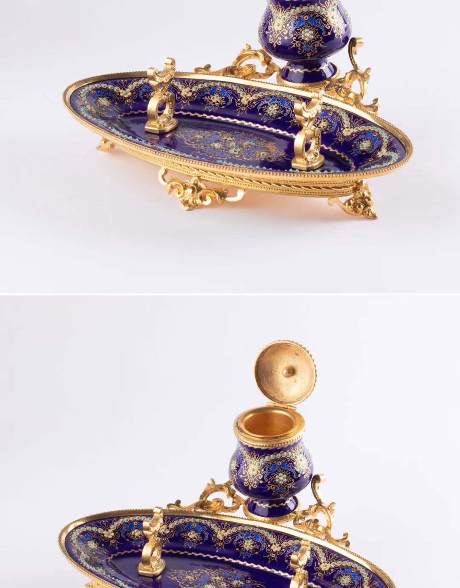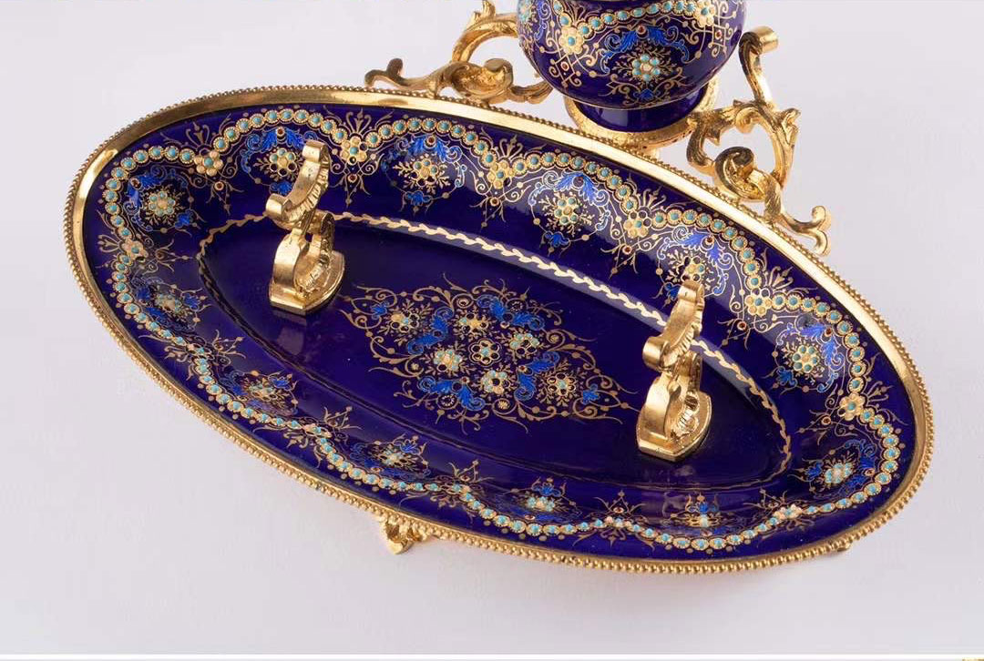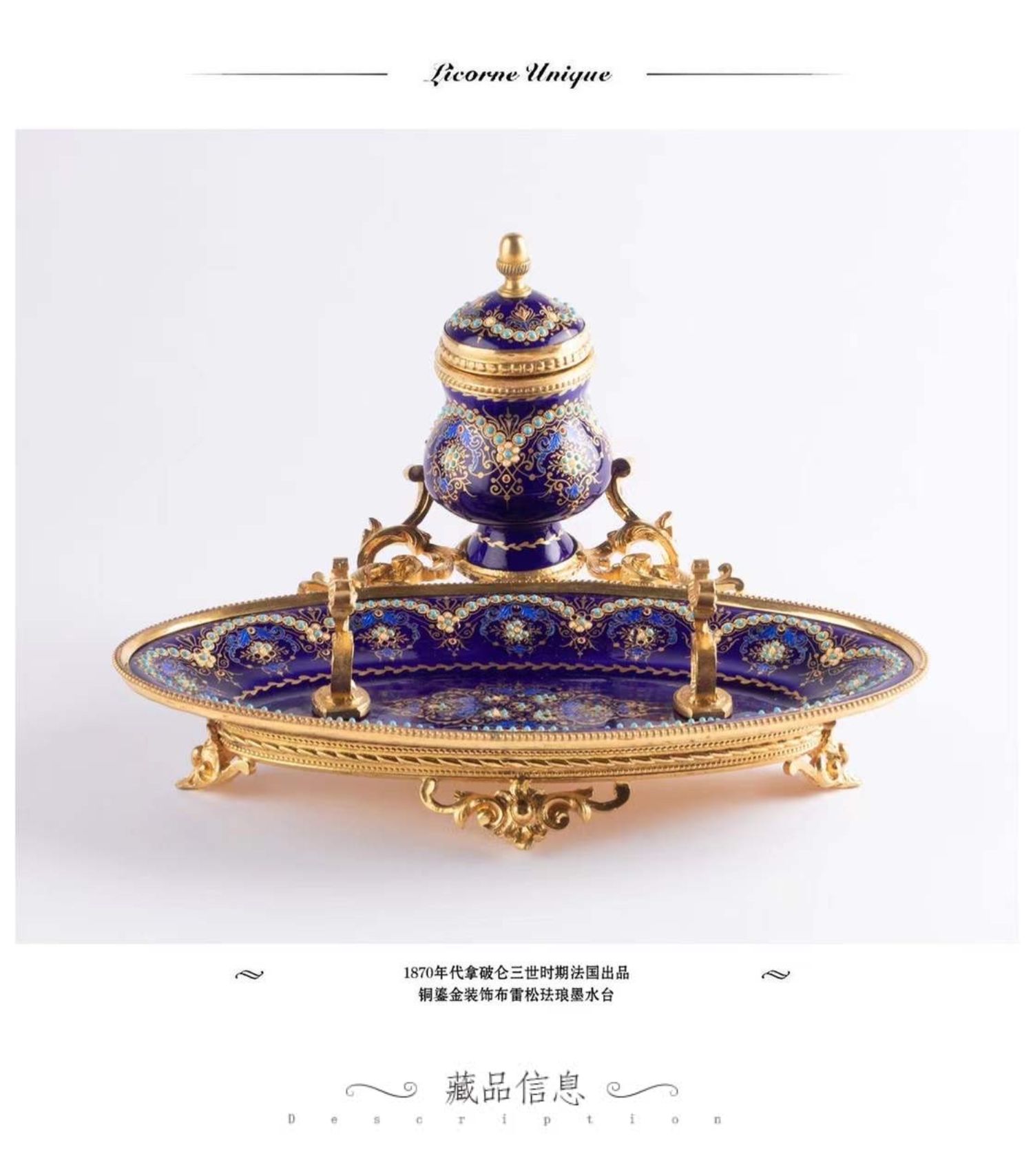 独角鹿西洋古董拿破仑三世时期法国出品铜鎏金布雷松珐琅墨水台