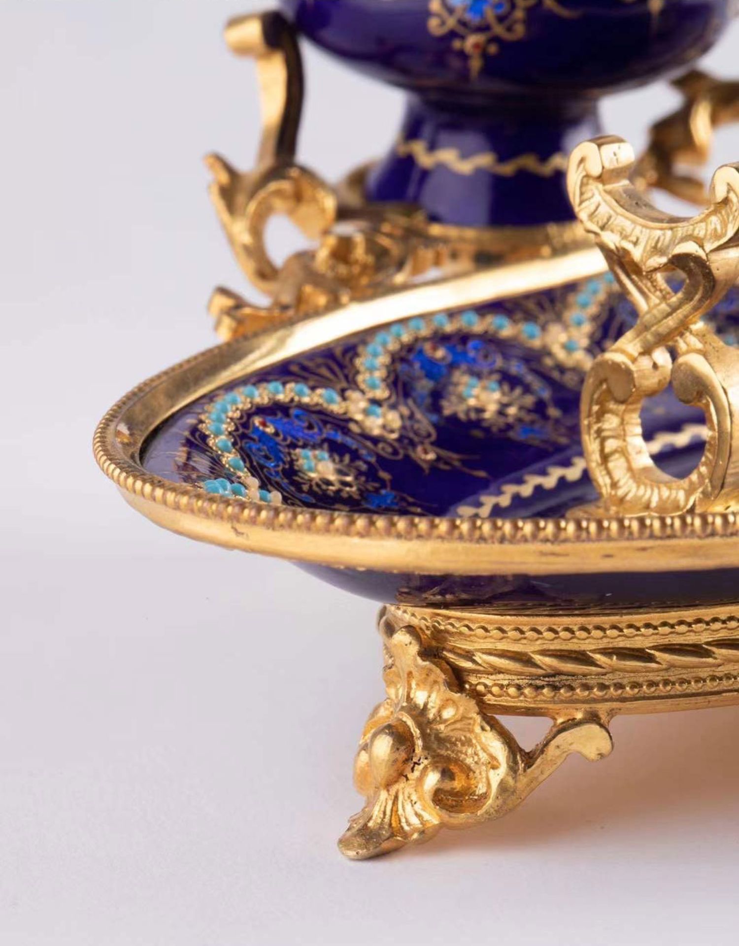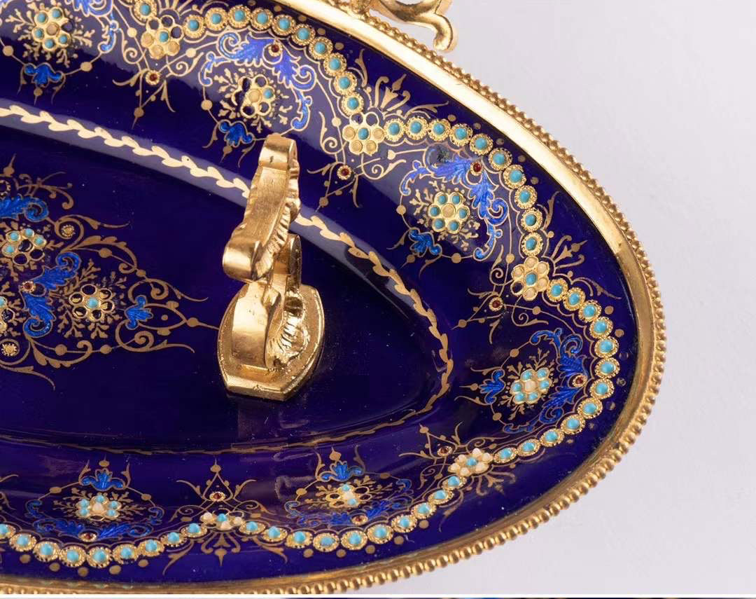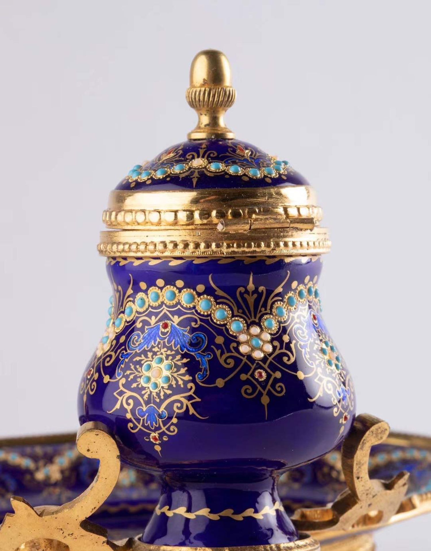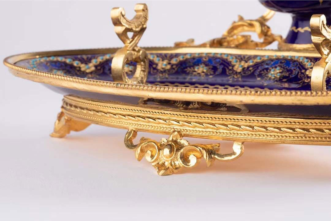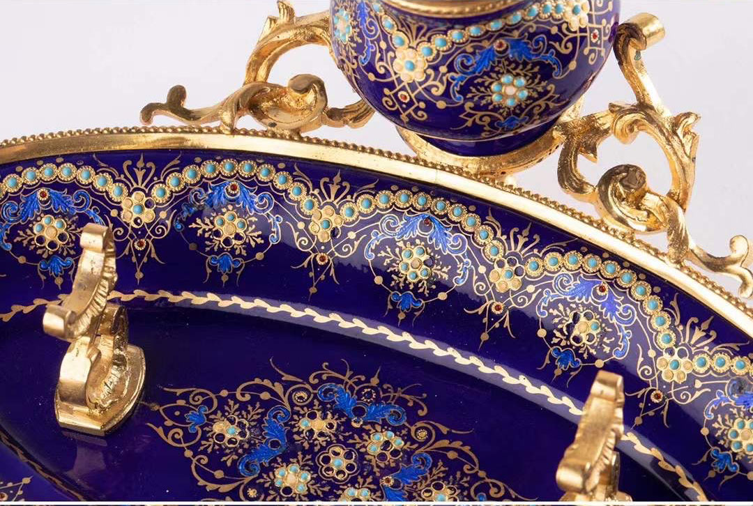 独角鹿西洋古董拿破仑三世时期法国出品铜鎏金布雷松珐琅墨水台
