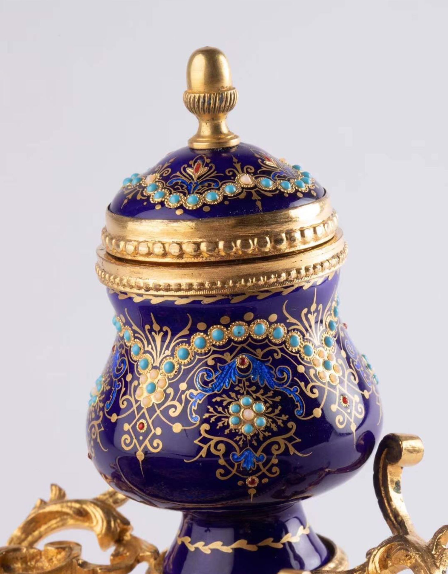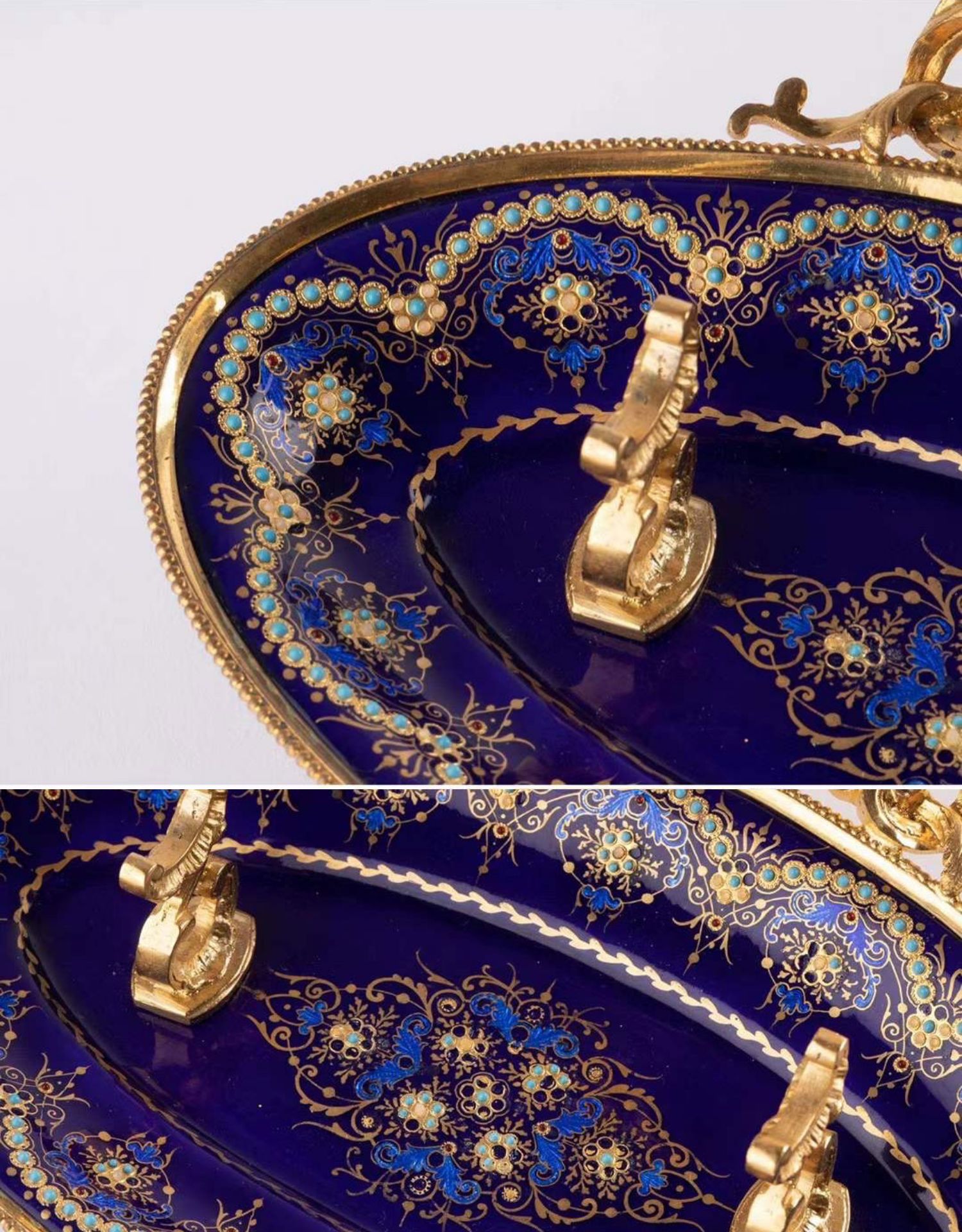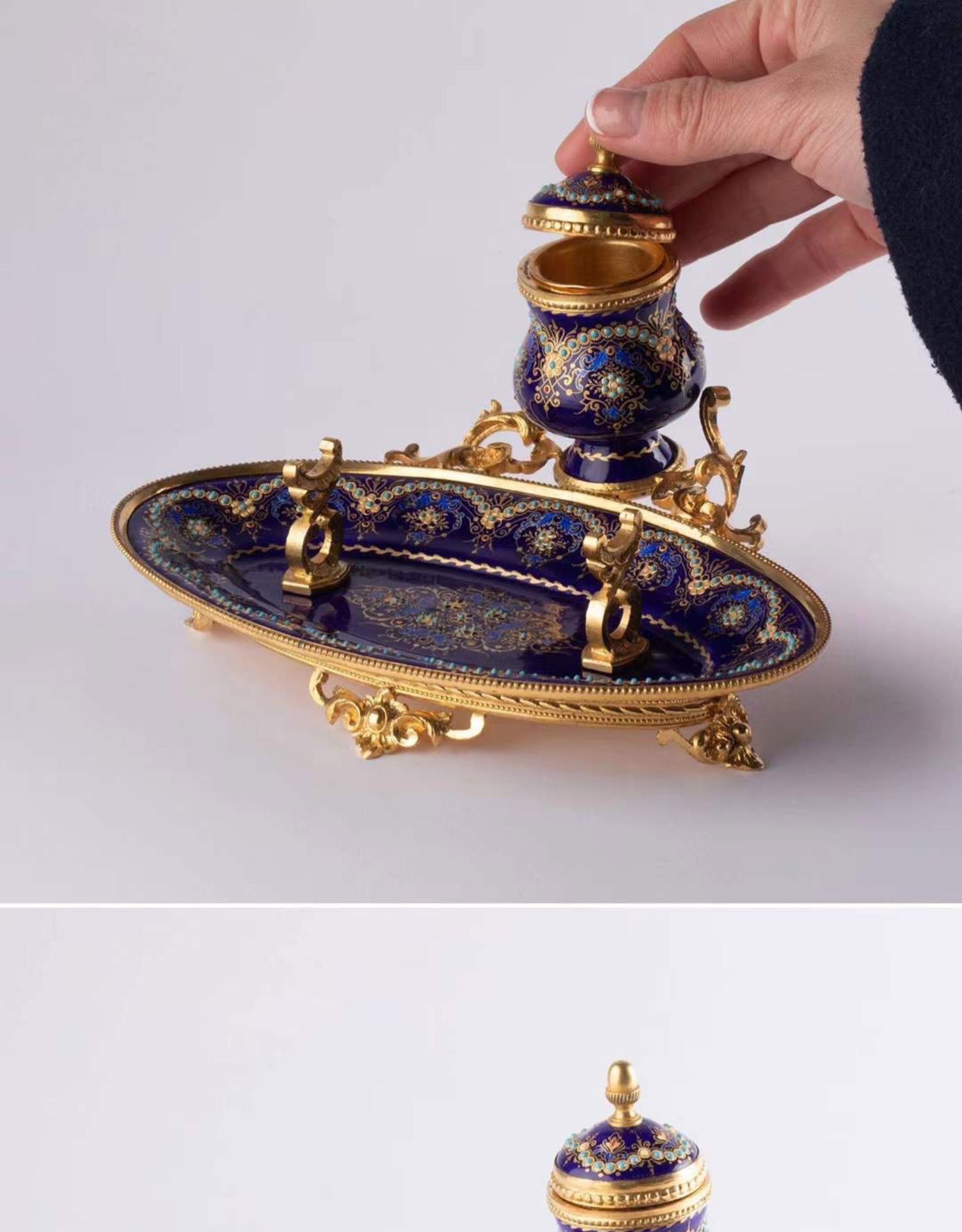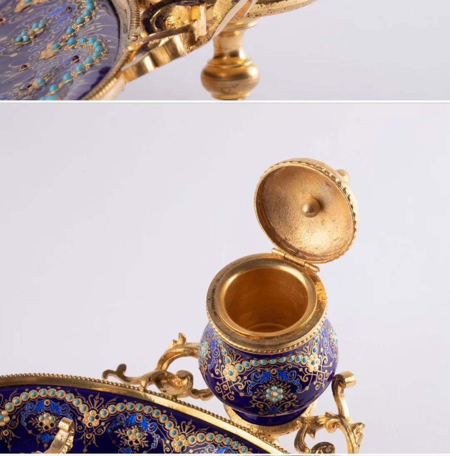独角鹿西洋古董拿破仑三世时期法国出品铜鎏金布雷松珐琅墨水台