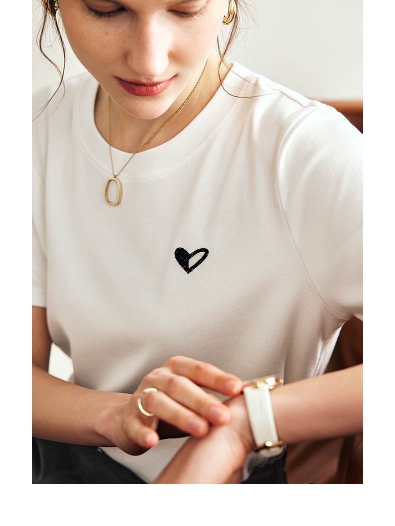 OLrain欧芮儿法式白色短袖T恤女夏季2023年新款爱心刺绣烫钻上衣