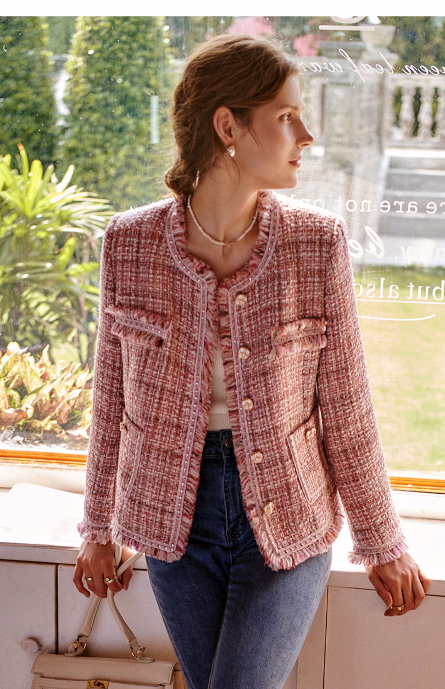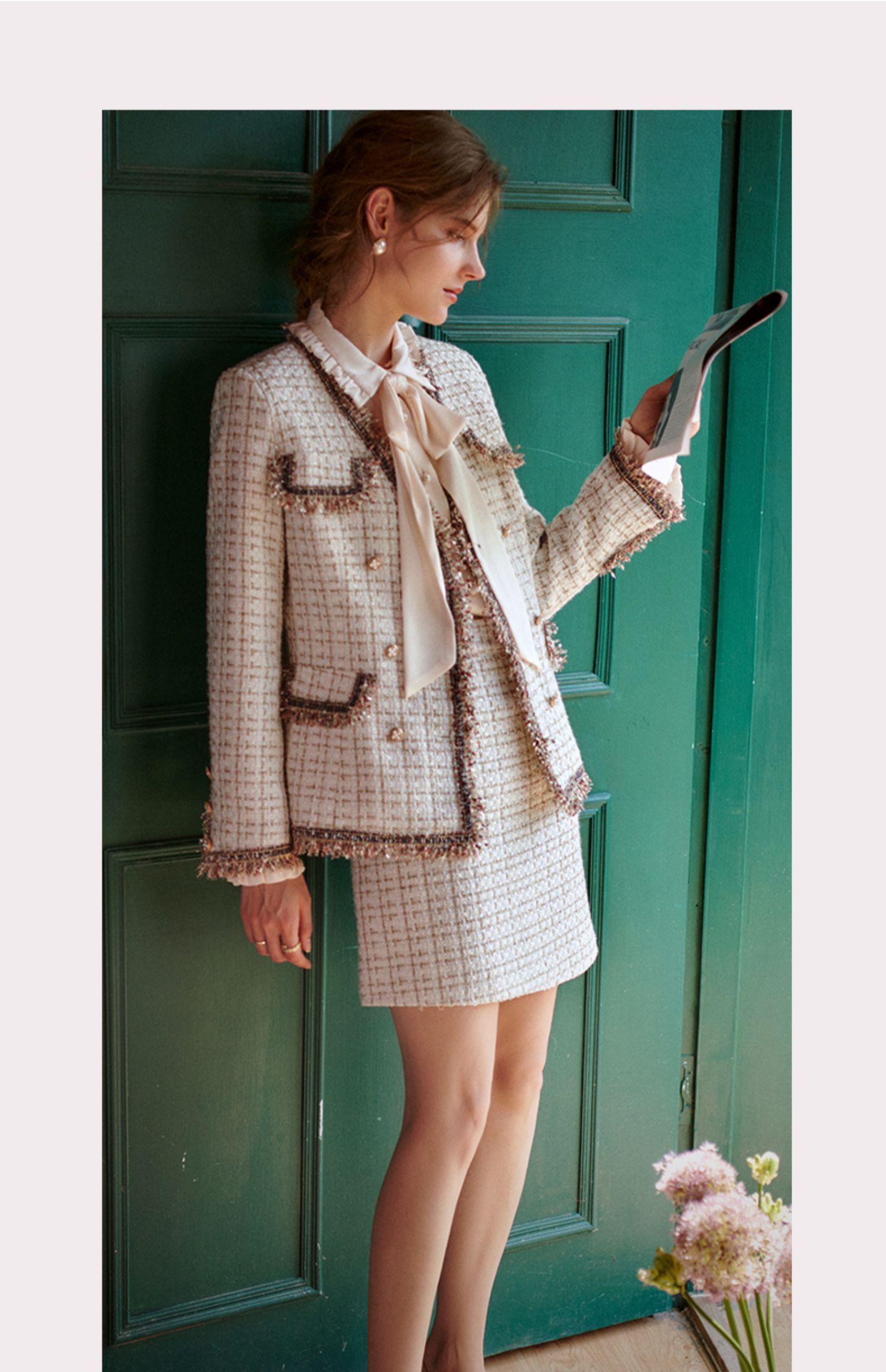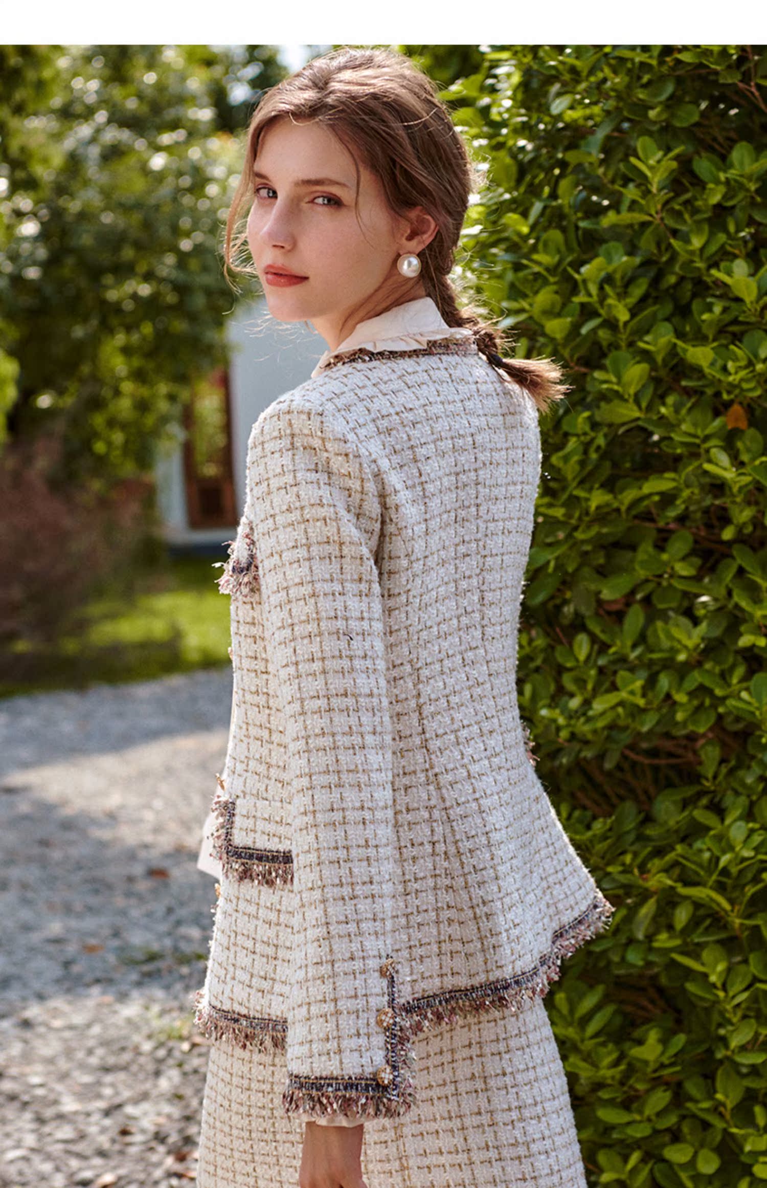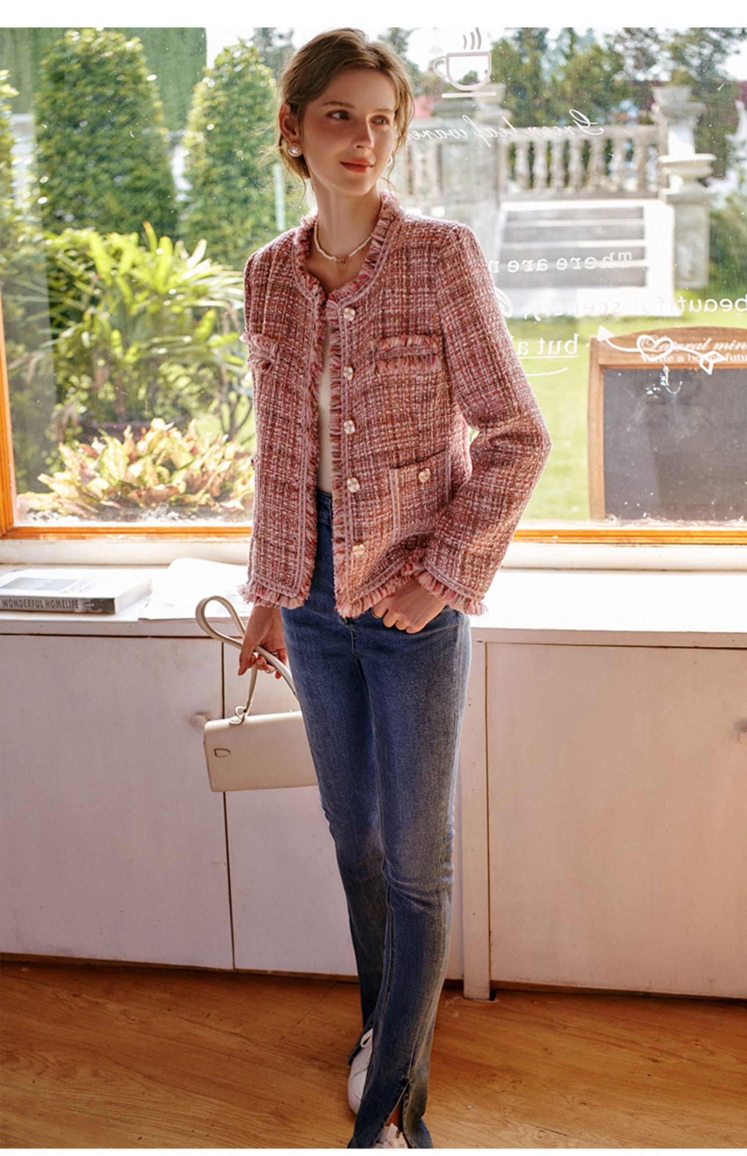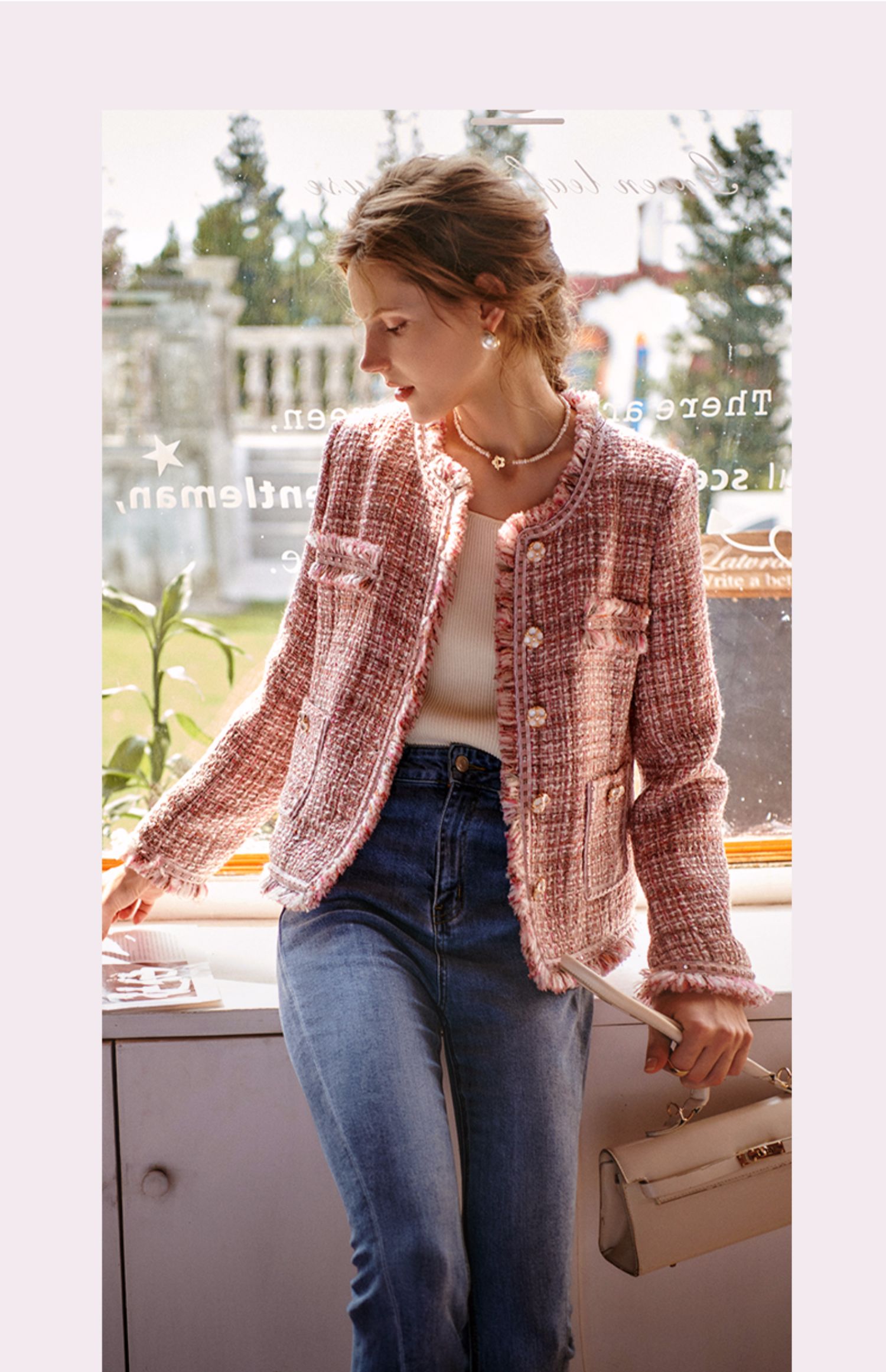 欧芮儿小香风短外套女春款2024法式优雅粗花呢气质小个子上衣