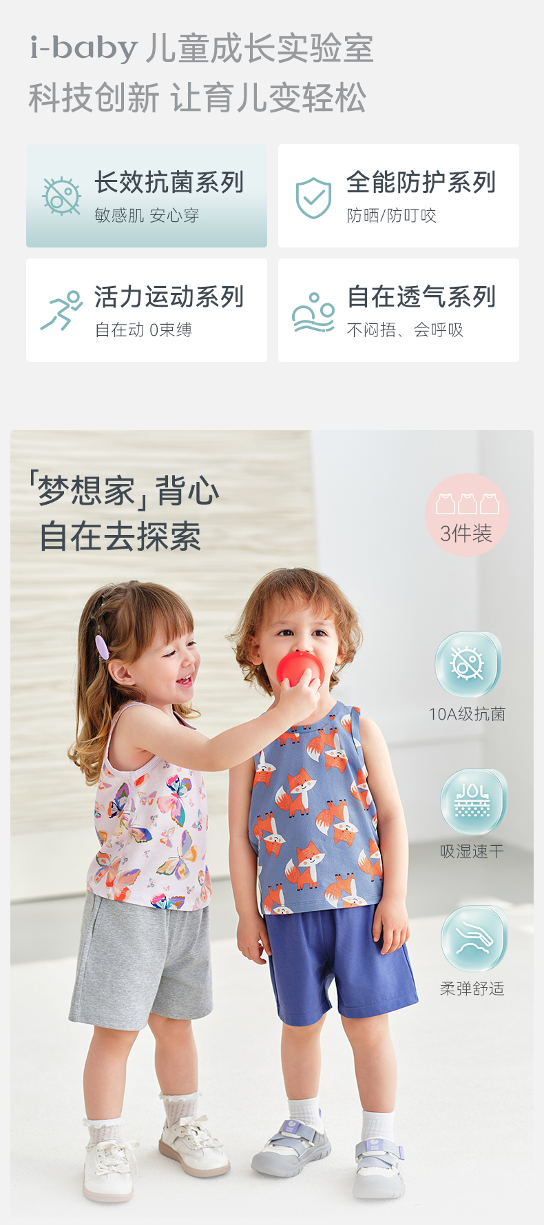 【2026春夏新品】ibaby×outlast太空科技恒温天然矿物银长效抗菌小背心(3件装)