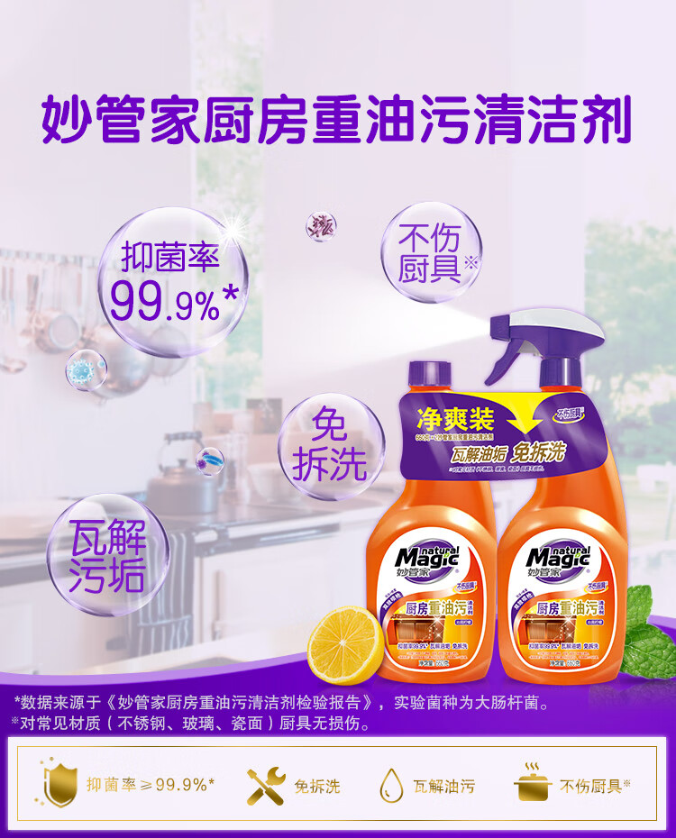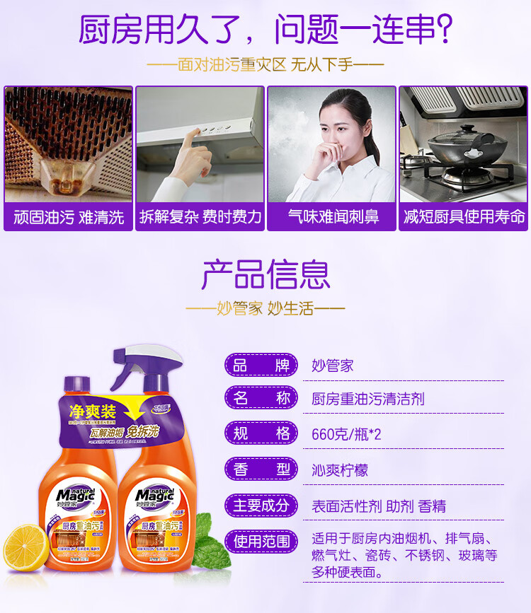 妙管家柠檬清香厨房重油污清洁剂660g*2特惠装