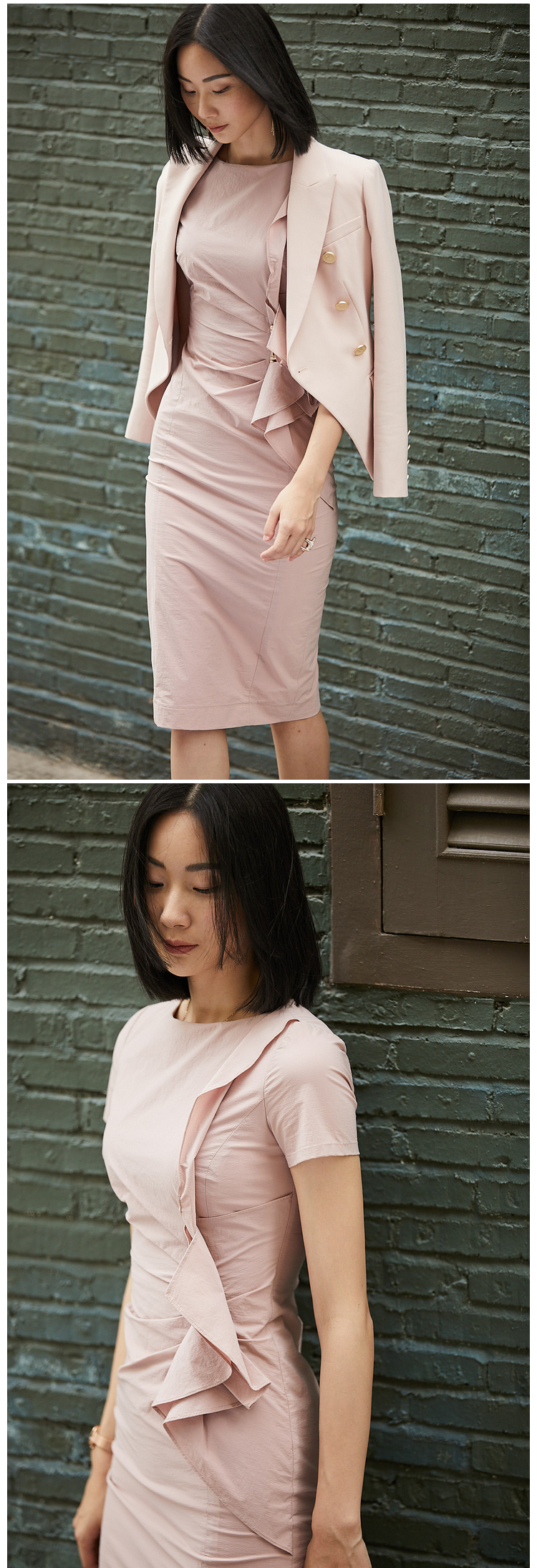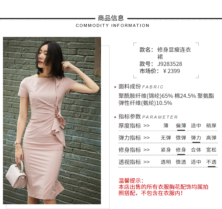 孤品 “空调裙”J9283528颈袖添香季新款时尚气质OL职场修身包臀显瘦女士连衣裙J9283528