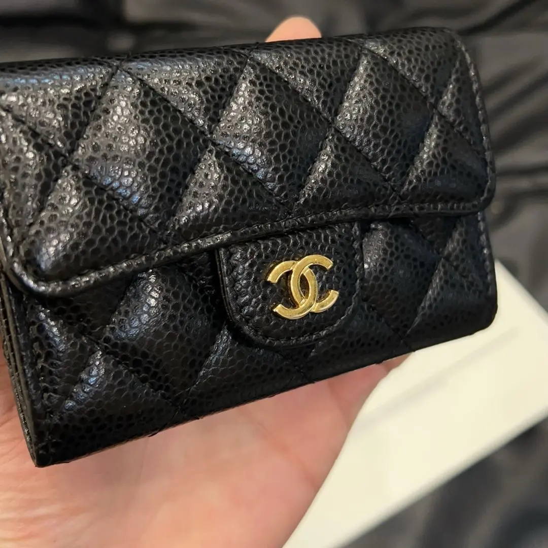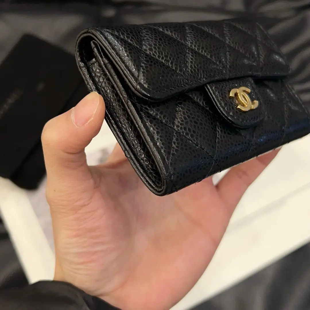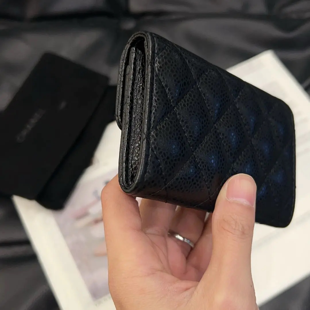 【商品详情】正品二手 Chanel 黑金 荔枝纹牛皮 钱包🖤 97新 11×7 镭射25开 配件:卡 防尘袋。牛皮耐磨 实用又保值