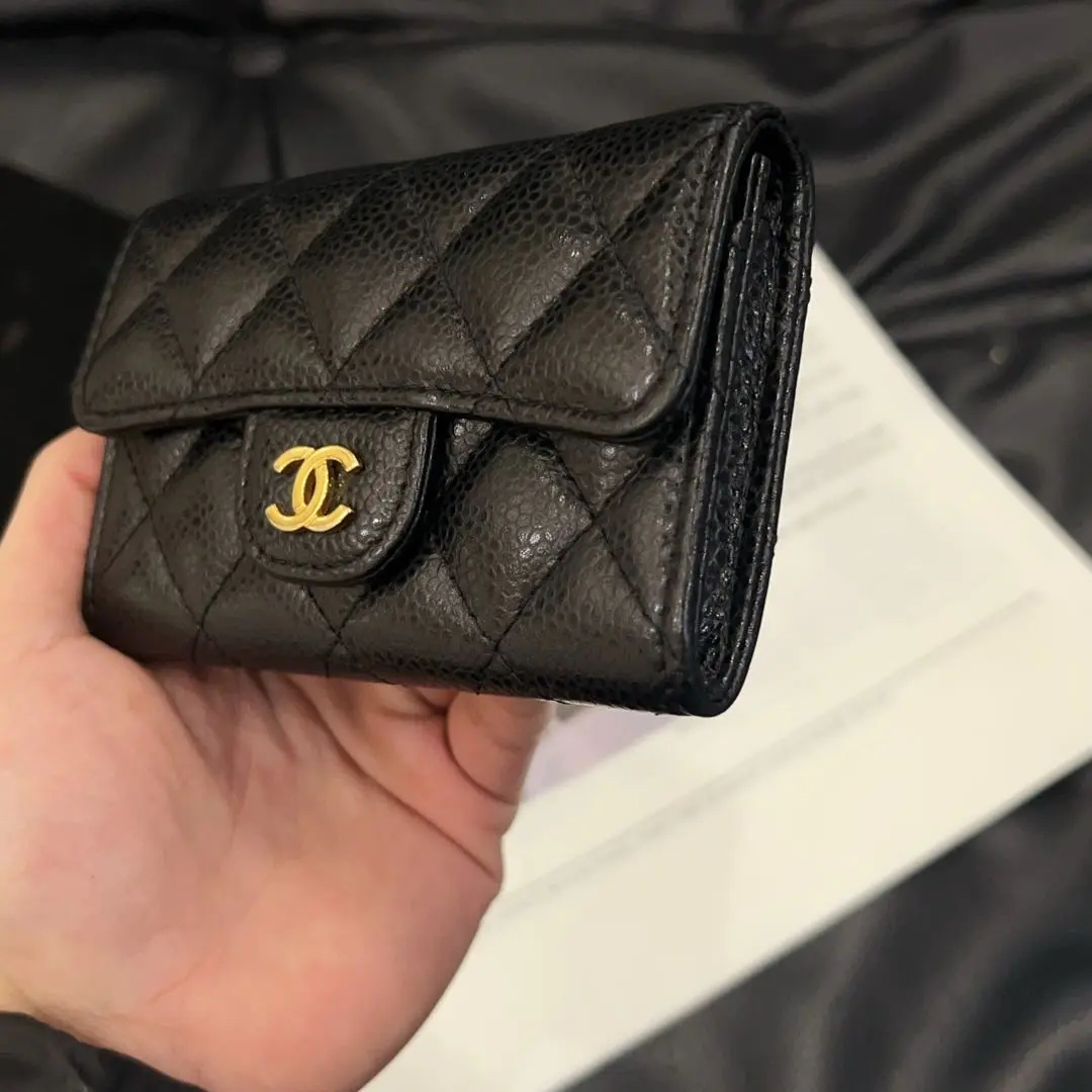 Chanel 黑金 荔枝纹牛皮 钱包