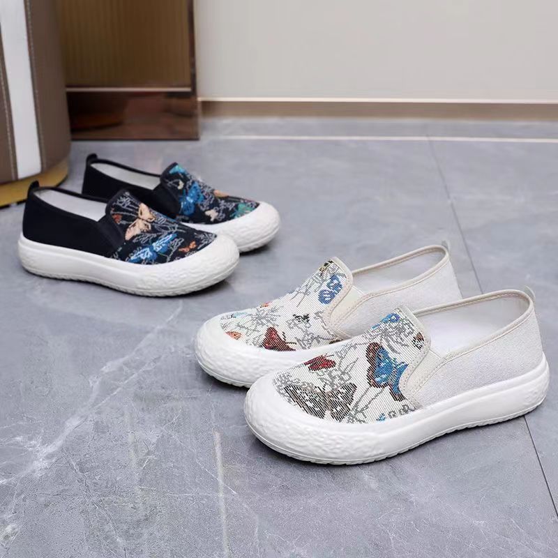 「买1送1!39.9到手两双」2024春夏季新款女鞋 圆头一脚蹬帆布鞋女软底学生懒人鞋单鞋渔夫鞋