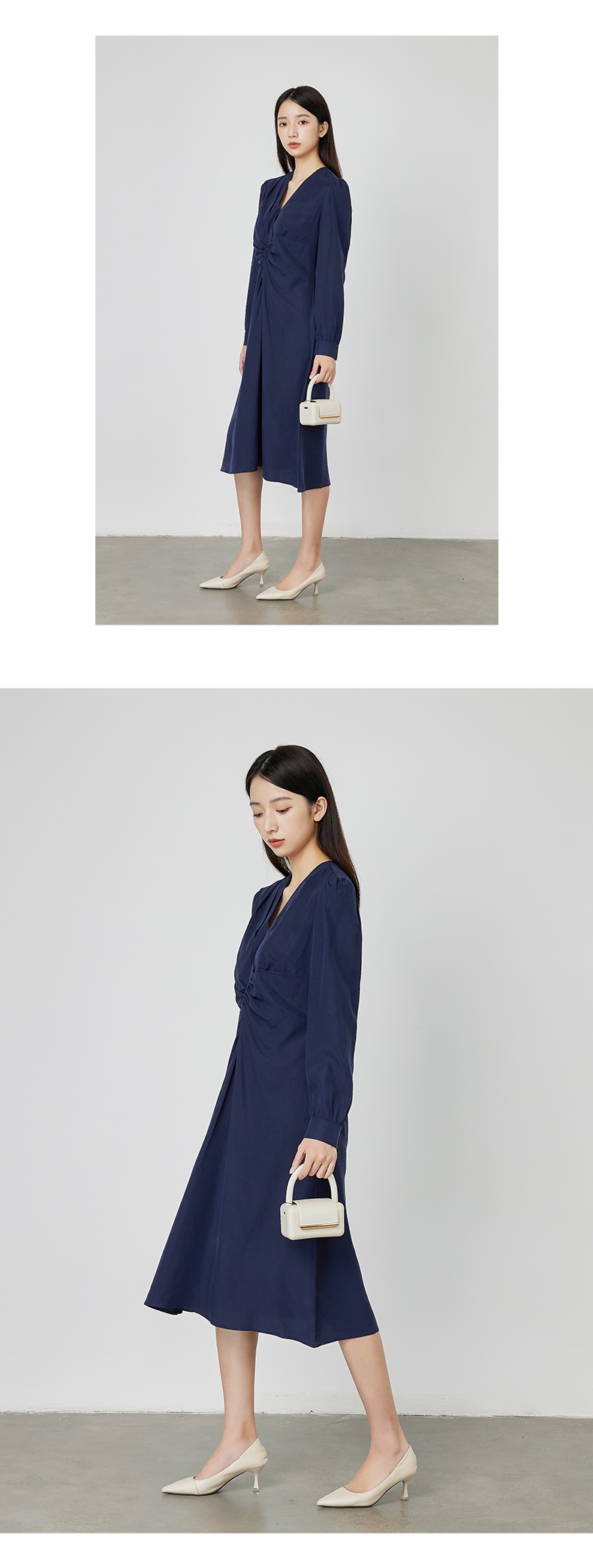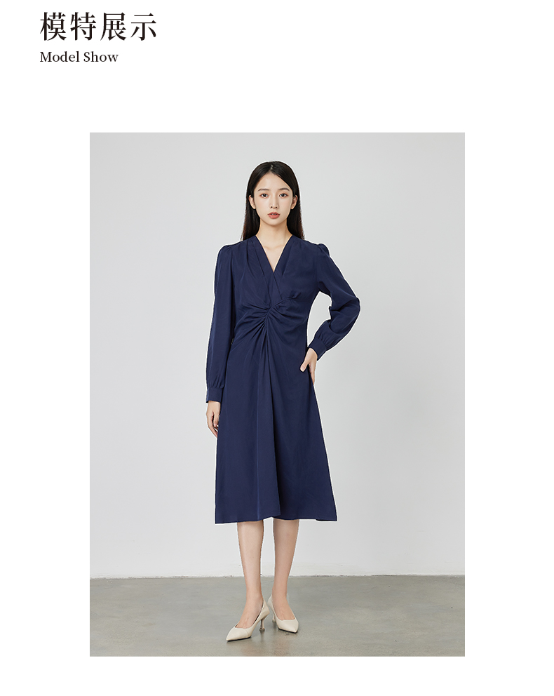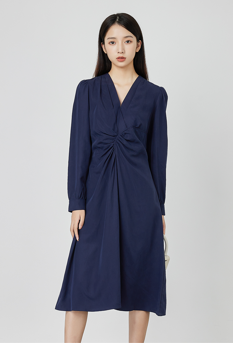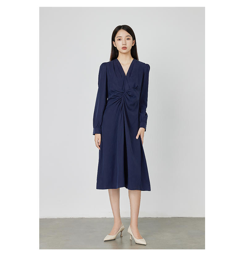 NUTS秋季新款气质通勤风修身显瘦褶皱设计长袖连衣裙女231103150B