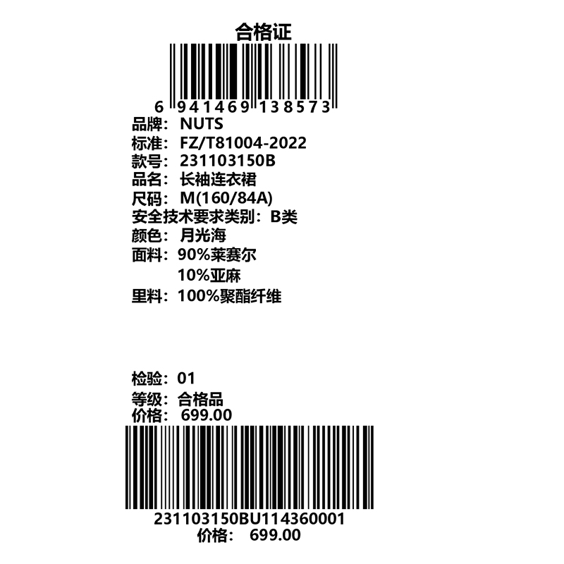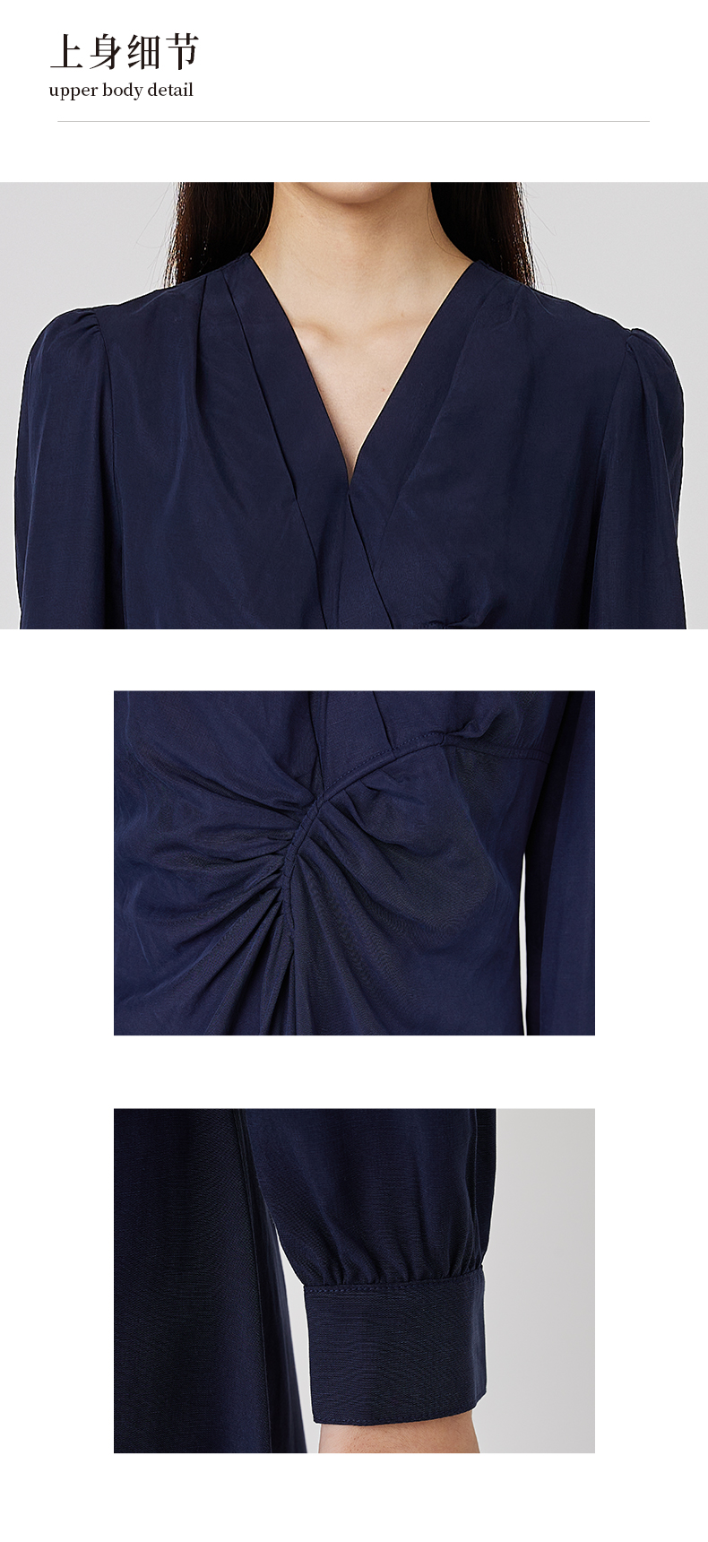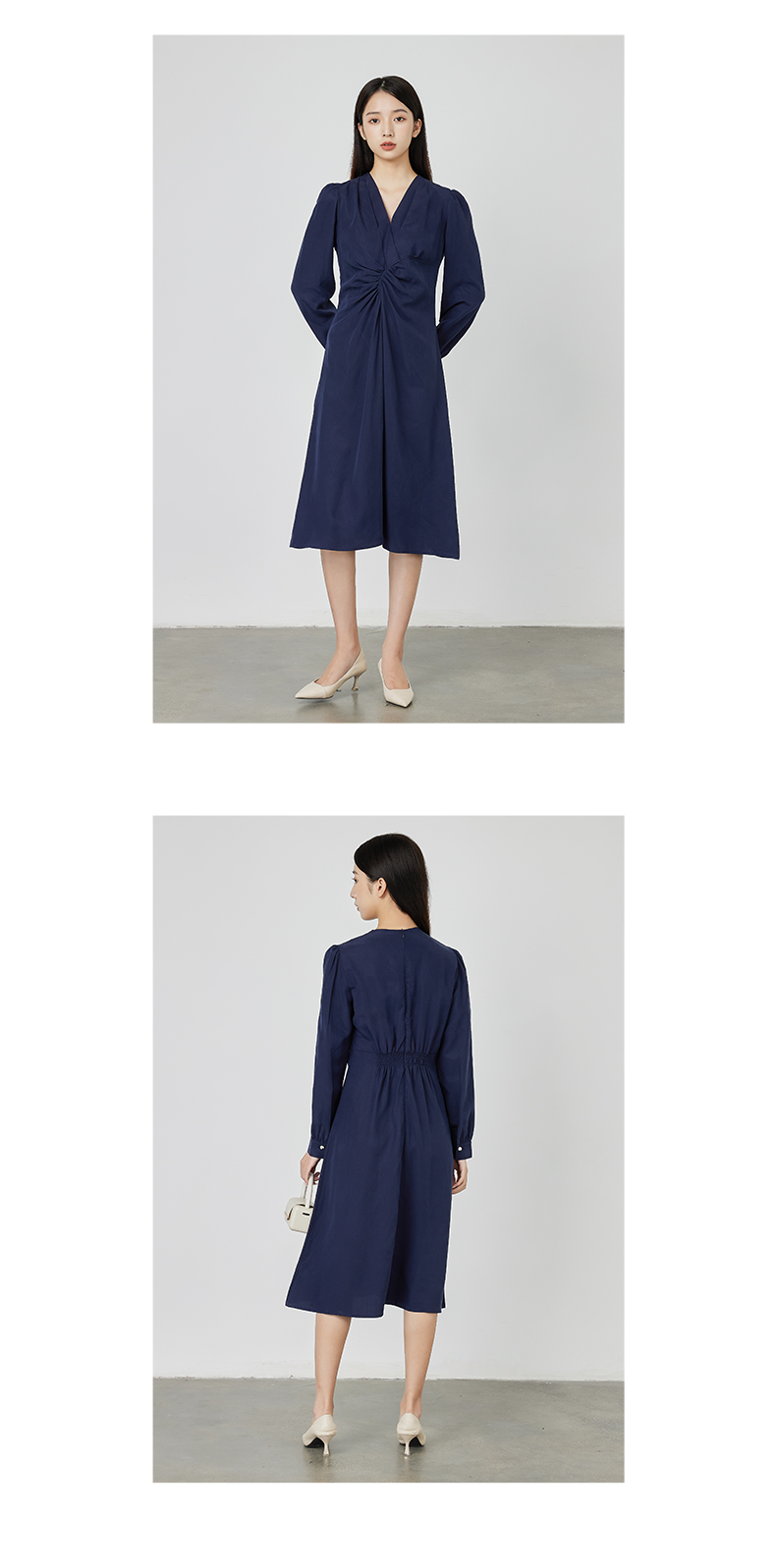 NUTS秋季新款气质通勤风修身显瘦褶皱设计长袖连衣裙女231103150B