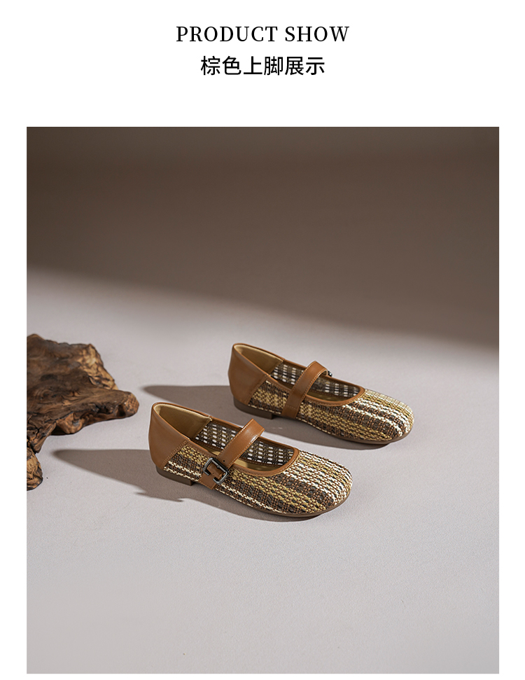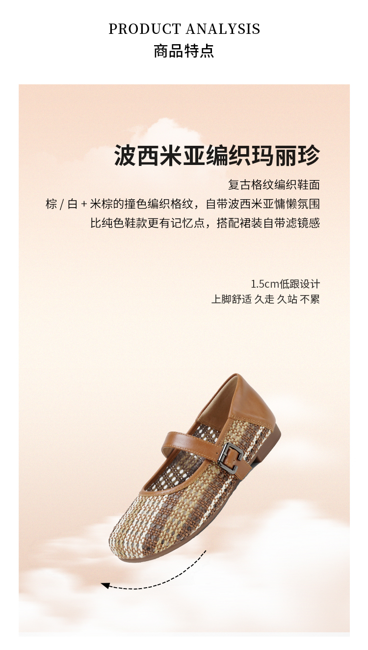【牛皮革】西村名物2026年夏季新款舒适平底一字带玛丽珍镂空洞洞鞋T26AH17861