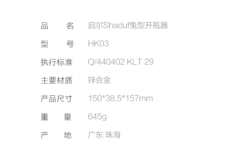 Cheer启尔 黑金兔头红酒手动开瓶器 红酒开酒器红酒起子