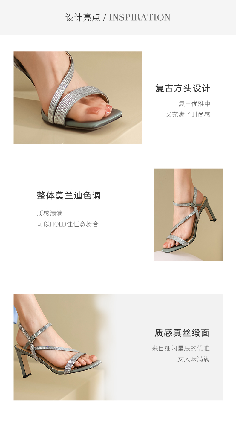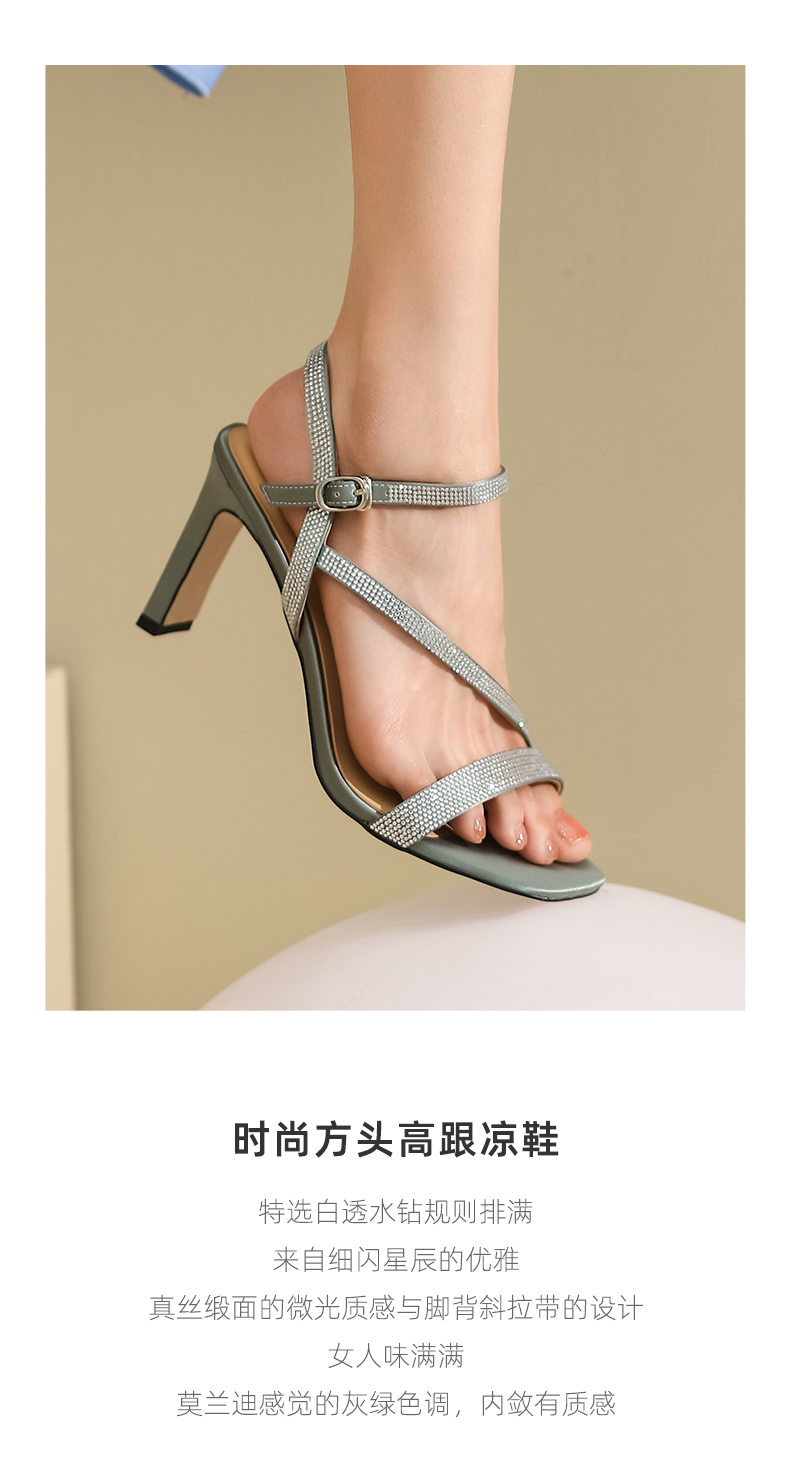 westory细高跟凉鞋夏季气质百搭一字扣仙女风单鞋W22BG61271