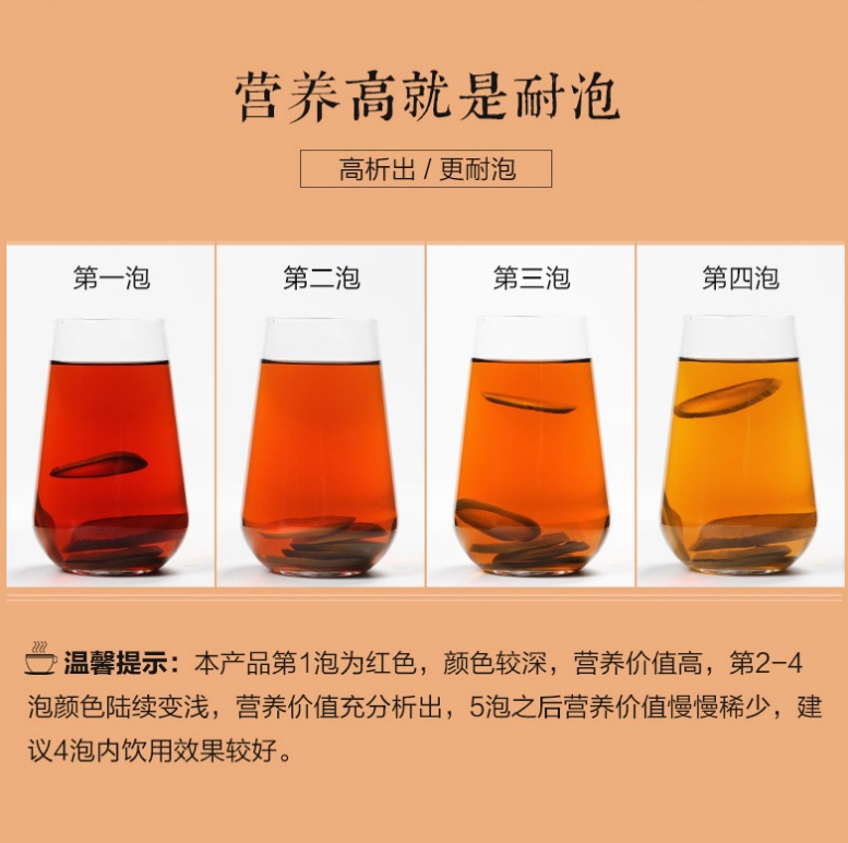 切3-5片,用100°开水冲泡10-15分钟,即可饮用,可重复冲泡3-5次。