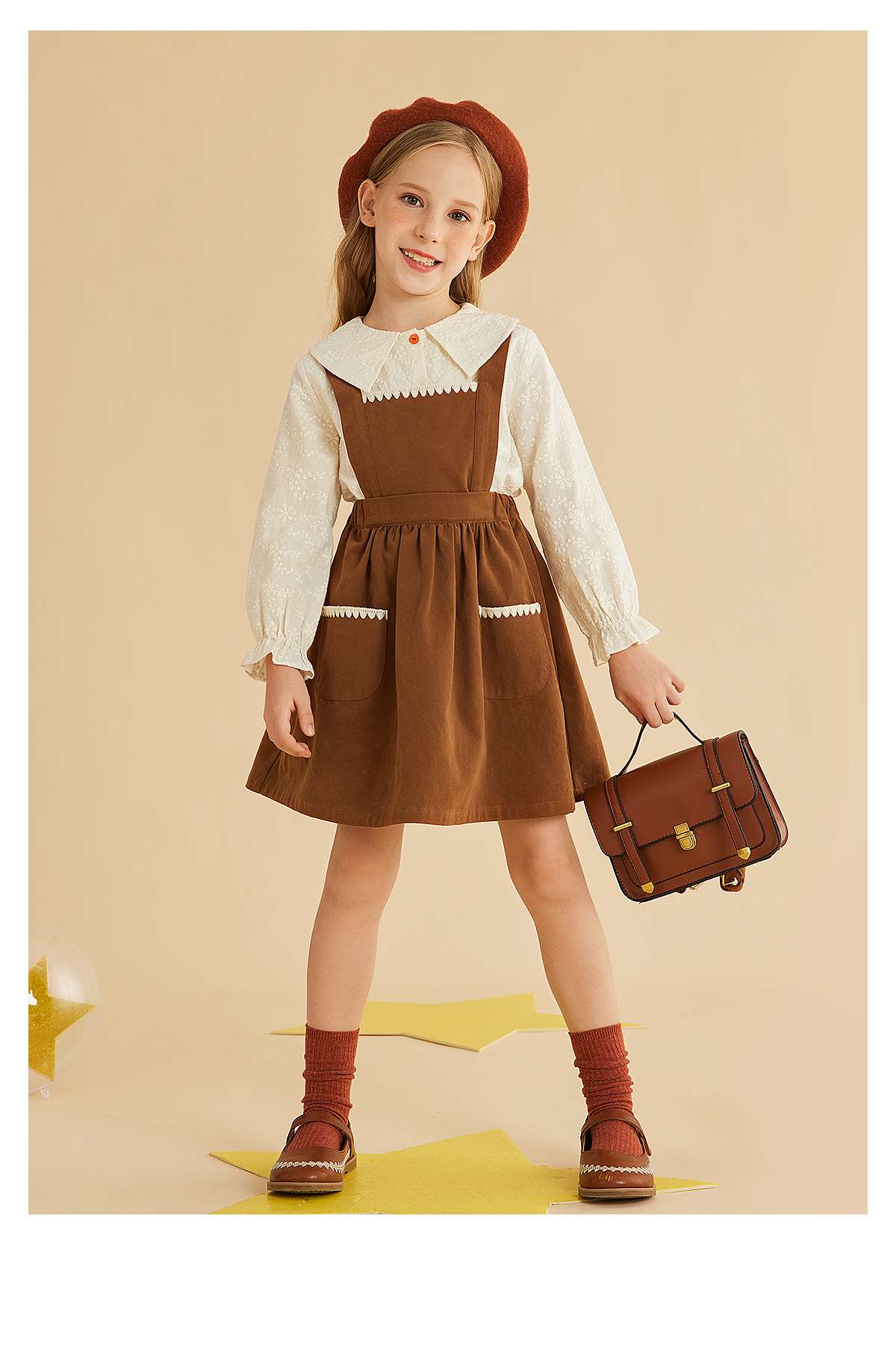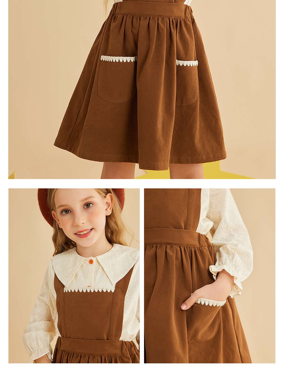littletime女童套装秋装洋气法式衬衫背带裙两件套2021春秋季童装