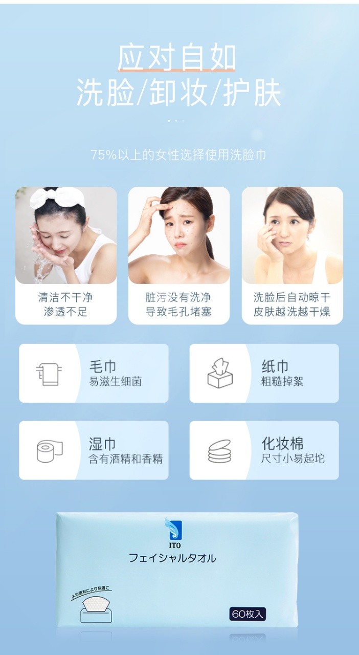 日本ITO一次性干湿两用洗抽式脸巾(60枚/包)