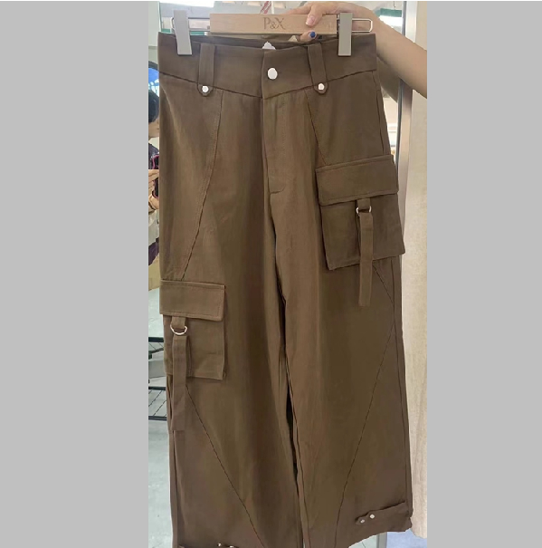 P&X设计师女装春季时尚多口袋设计宽松牛仔长裤825110067 枣红